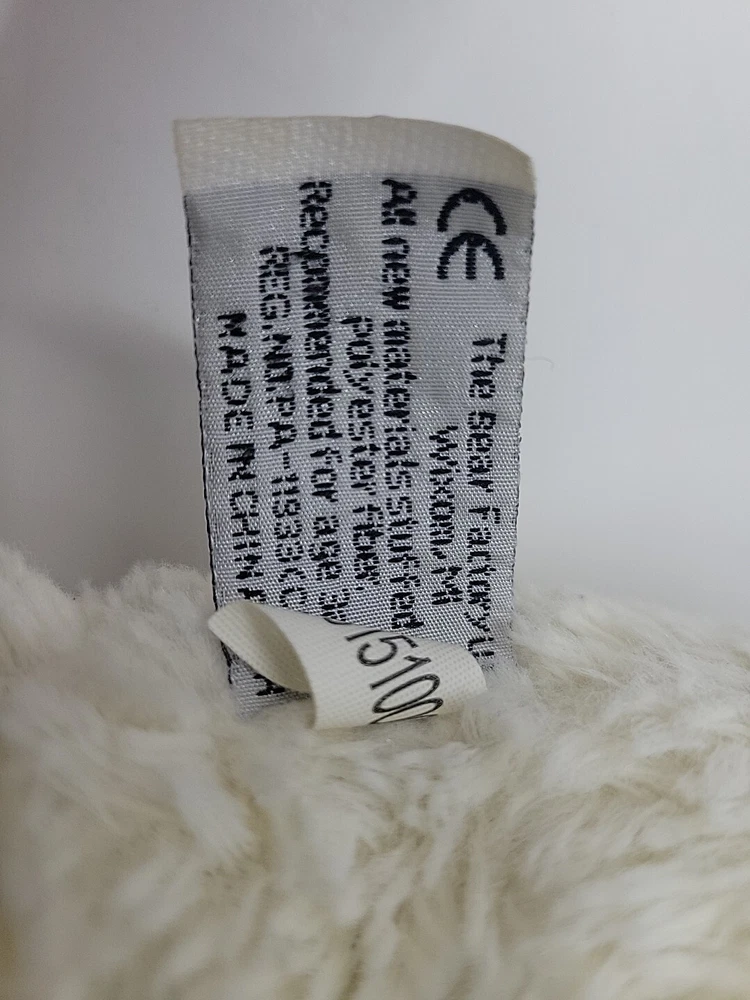 Brand:Bear FactoryRecommended Age Range:+1MPN:1201510002Size:Medium (14-24 in)Seller Notes:“Plush is in good pre-owned condition with typical marks and wear associated with use and age.”Color:WhiteCharacter Family:Polar Teddy BearAge Level:3-4 Years, 8-11 Years, 12-16 YearsCountry/Region of Manufacture:ChinaFeatures:Retired, WashableOccasion:allYear:2001Animal:Bear