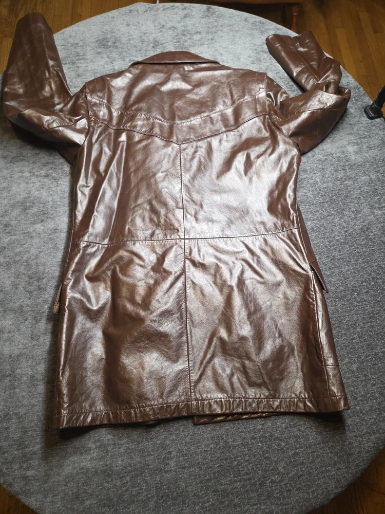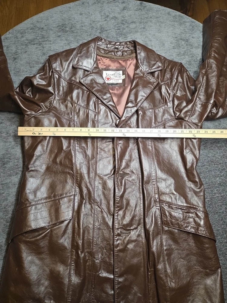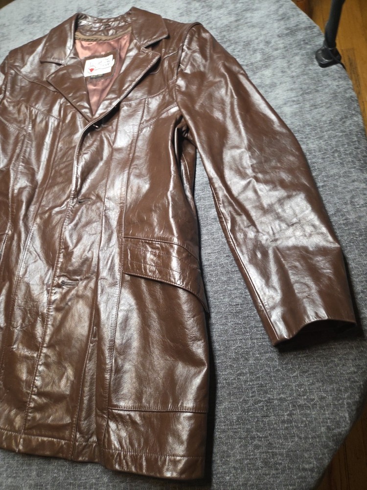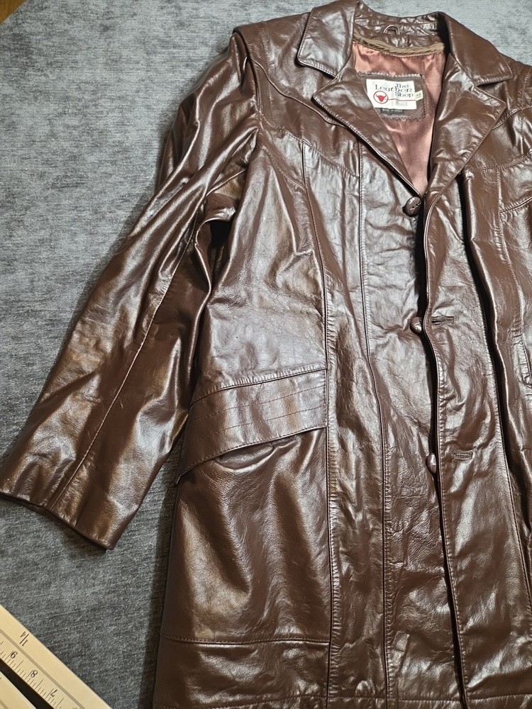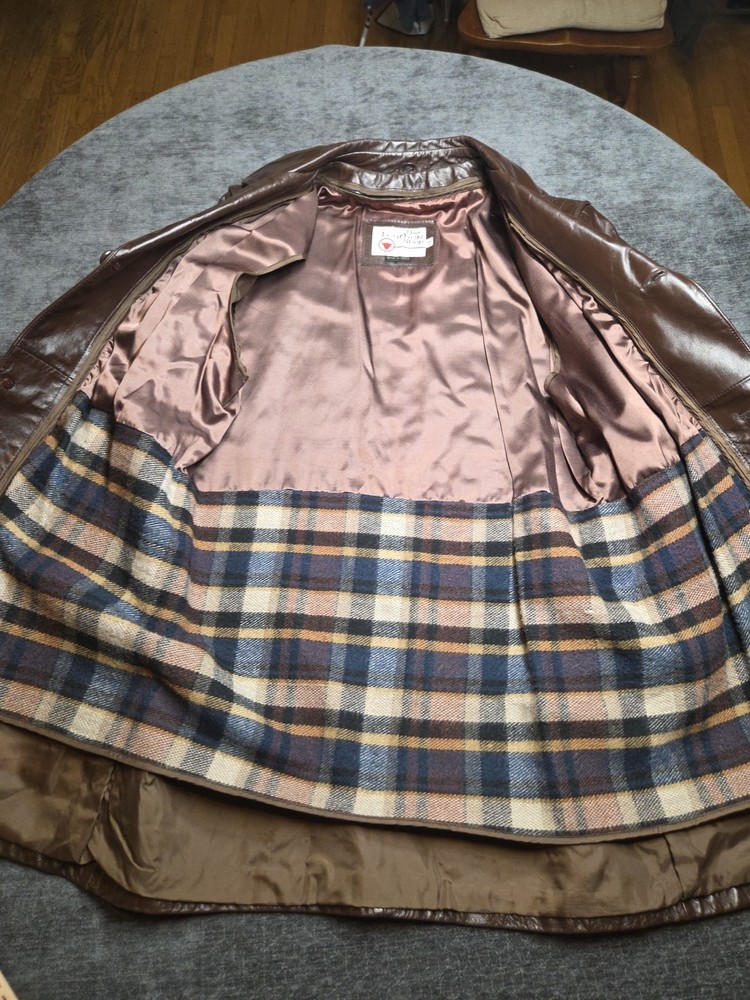 The Vintage The Leather Shop By Sears 44 X-Tall Removable Liner is a stylish and versatile overcoat designed for big and tall men. Made from high-quality leather, this coat features a classic brown color and a chest size of 44 inches. The removable liner adds extra versatility to the coat, making it perfect for layering in various weather conditions. With its timeless style and durable construction, this coat is a must-have addition to any man's wardrobe. 264
