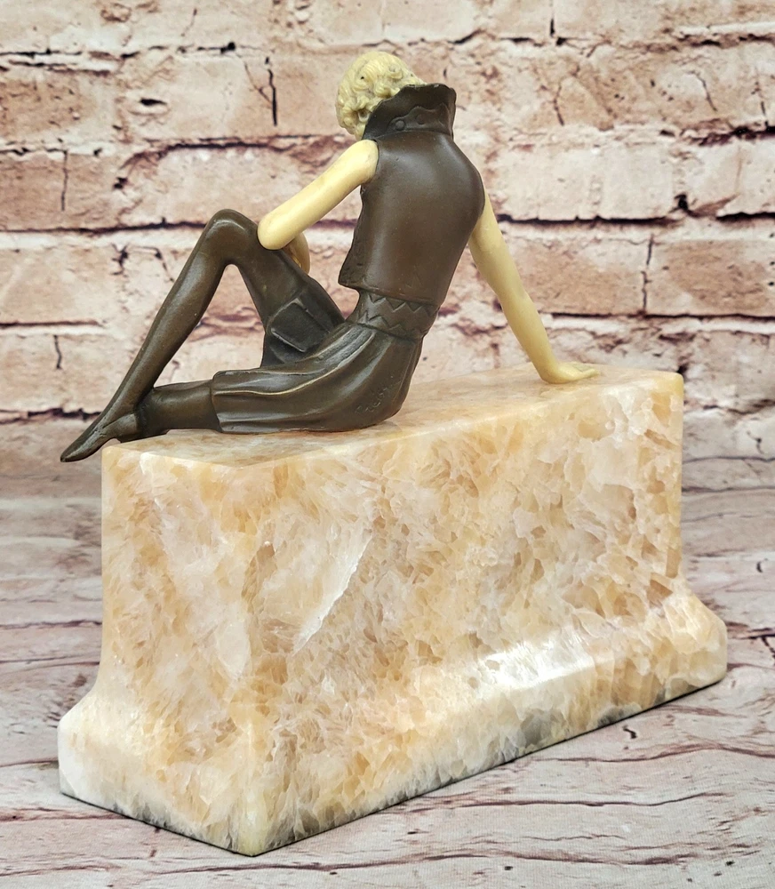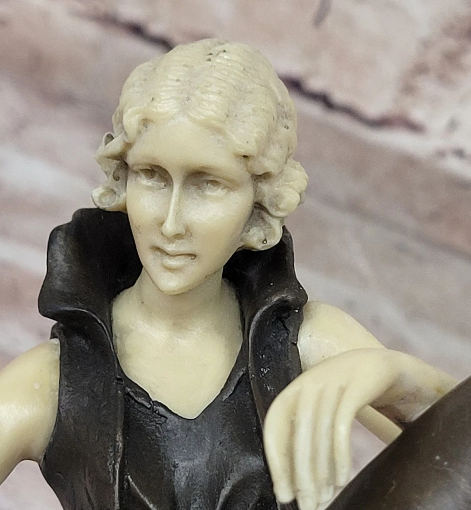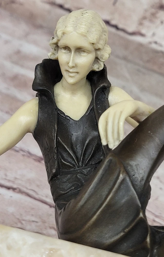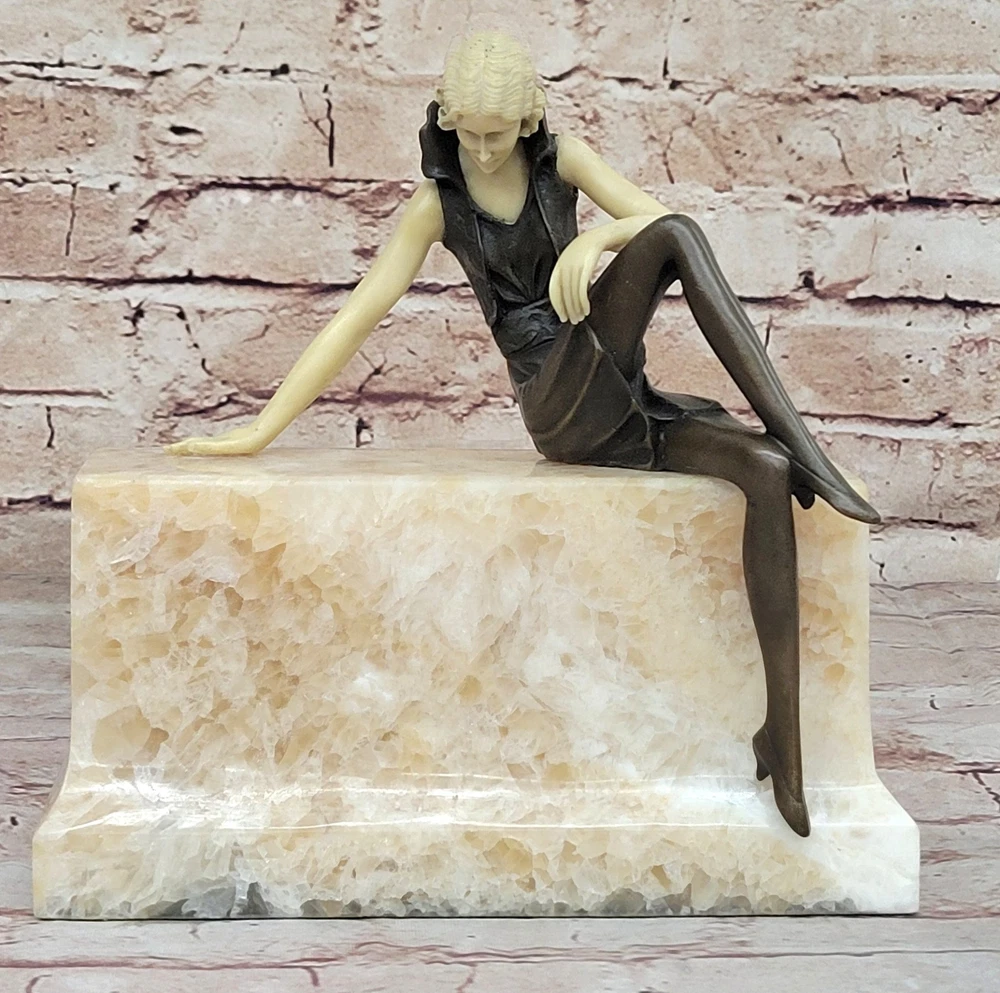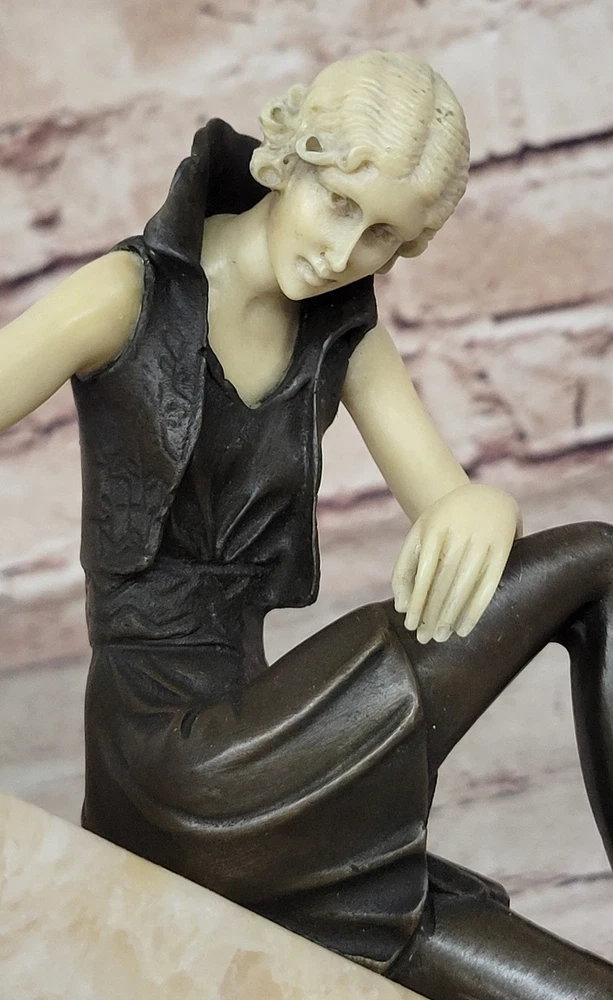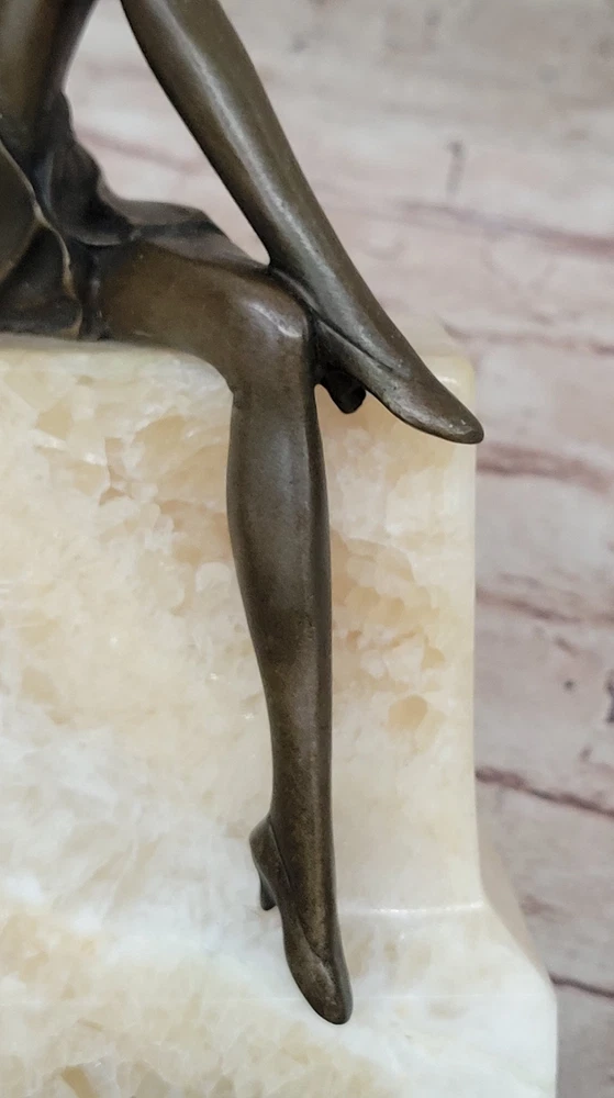 Vintage Theatre Actress Bronze Statue Dancer Nude Jazz Singer Classic Figure Art Vintage Theatre Actress Bronze Statue Dancer Nude Jazz Singer Classic Figure Art Condition : This sculpture is in perfect condition. Bronze Dimensions with Marble Base: Height 8" X Width 8" Marble Dimensions:8" X 3 1/2" Height without base:7.5" Weight:10 LBS Inventory:61XQ0074616 Sculpted in a captivating pose that exudes both confidence and allure, this bronze sculpture captures the essence of a young woman embracing her femininity with boldness and elegance. With her long, curvy legs on display in a short, tight mini skirt, she commands attention and stirs envy among other women while eliciting desire from men drawn to her undeniable beauty. As a symbol of feminism, the woman depicted in the sculpture wields tremendous power through her captivating presence, effortlessly captivating those who gaze upon her with nothing more than a glimpse of her golden skin. Her figure embodies strength, independence, and self-assurance, serving as a testament to the allure of feminine allure and empowerment. Crafted using the ancient lost-wax casting method, this handmade bronze sculpture showcases exquisite craftsmanship and attention to detail. The brown patina finish adds depth and character to the piece, while the choice of mounting it upon a beige onyx base enhances its aesthetic appeal. Though the sculpture's body is made of bronze, the hand and face are crafted from resin, allowing for greater precision and detail in capturing the delicate features of the subject. Bronze Sculpture Sexy Model Posing Bronze Hot Cast Classic Artwork Figurine Gift www.bronzhaus.com Video will open in a new window Using the eBay App? Paste link into a browser window: [isdntekvideo] Shipping Terms : Most of our items are shipped via USPS (United States Postal Service) mail or UPS. Most orders are shipped within 24-48 hours of purchase. Please be aware that not all items are available for USPS shipping due to size and weight. We do ship to Hawaii, Alaska, Canada, Puerto Rico, APO/AE, and U.S. Virgin Islands, however, an additional charge may be required. Please contact us before making any purchases in these areas. For Non-USA customers, you may be responsible for all duty, tax, brokerage fees that may be due upon delivery (shipping costs cover freight charges only). We also ship internationally. Please refer to the "Shipping and Handling" chart for the rates for each area. Payment : We accept just about any form of payment. PayPal, Master Card, Visa or American Express credit cards. Money orders, cashiers checks, and even personal or business checks. For governmental institutions, we will also accept a purchase order. Please understand that for personal or business checks we have to wait for the check to clear (usually 7 days) before shipping. Condition : New Detailed Hand Crafted Hot Cast Bronze Satisfaction Guaranteed. This is Stock Photo, Slight Color Variation!! Listing and template services provided by inkFrog