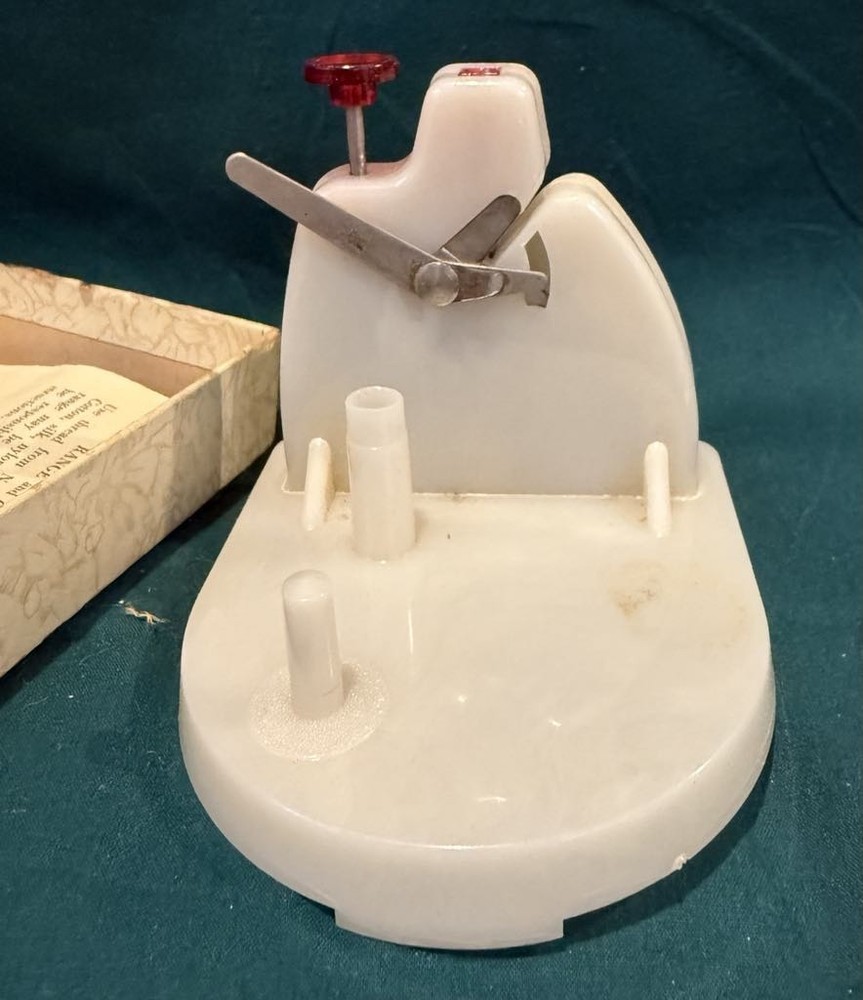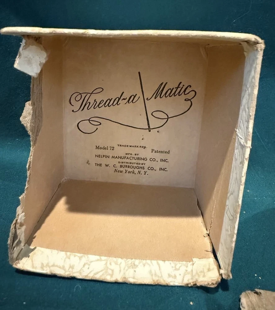 The Vintage Thread-a Matic Model 72 Jewel Needle Threader is a unique sewing accessory that allows for easy threading of needles, perfect for those who enjoy hand sewing or crafting. This modified item comes with its original box and is suitable for various needle types. The box is not in great shape but it is the original box. The brand, Thread-a Matic, adds a touch of nostalgia to this practical tool, making it a desirable piece for collectors or those looking for a reliable needle threader for their sewing projects.