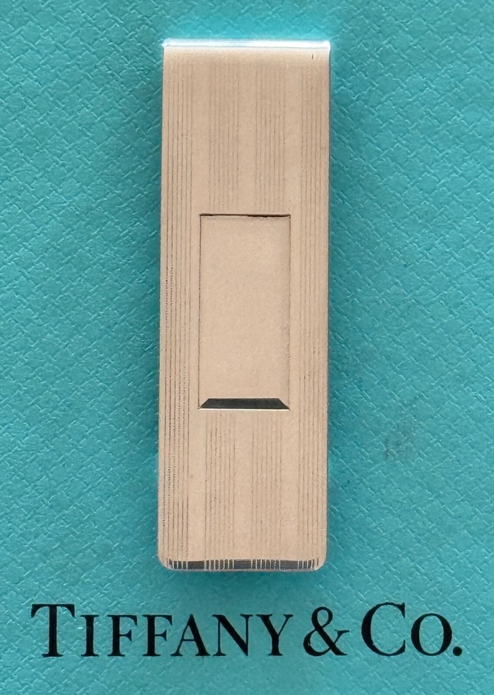 This sleek Tiffany & Co. money clip is a timeless piece—perfect for keeping bills organized in style. The engine-turned sterling silver has a gorgeous polished finish, and even pre-owned, it feels luxurious. No box, but the quality and authenticity speak for themselves. A must-have for anyone who appreciates classic elegance!