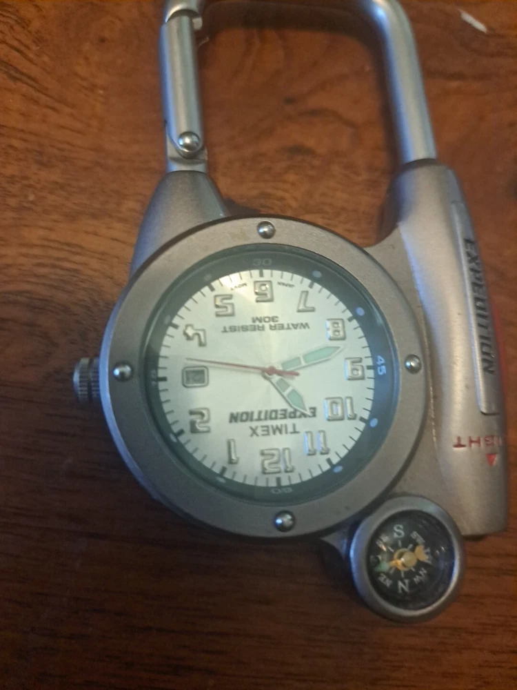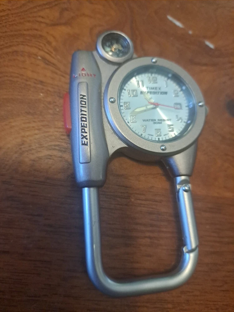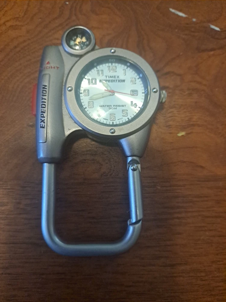 Vintage Timex Expedition Carabiner Watch Compass And FlashLight Camping Outdoor