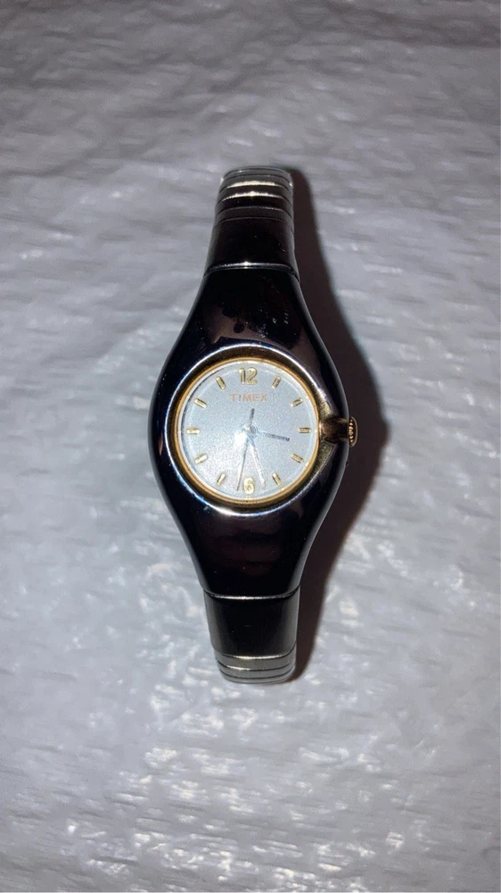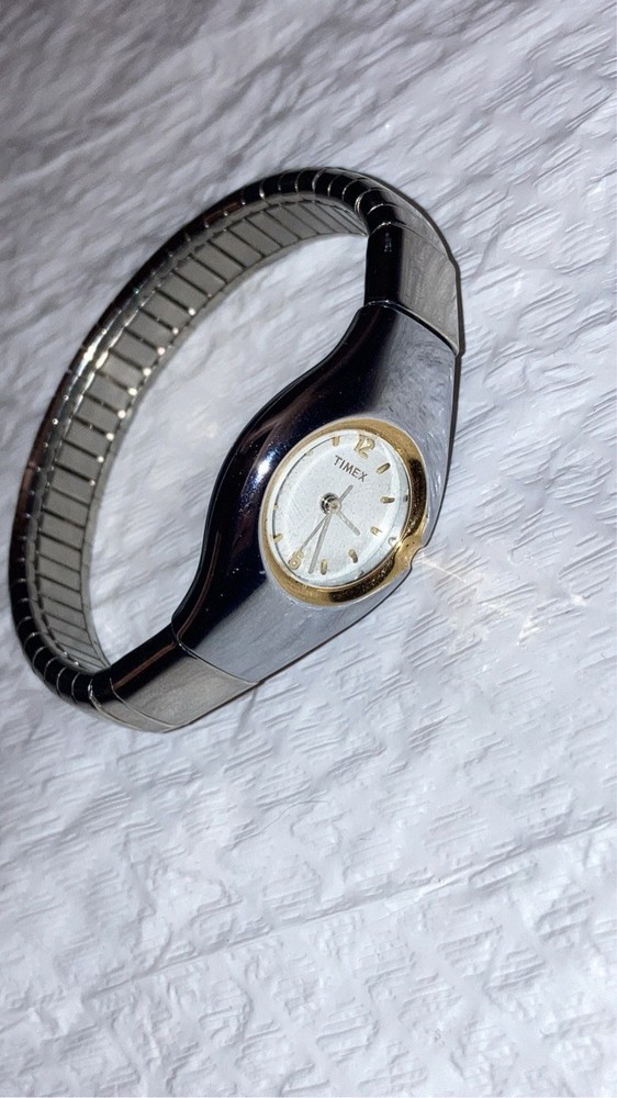 The product is a Women's Timex Vintage Two Tone Watch with a stretch band. It is designed specifically for women and features a classic and stylish vintage look. The two-tone color scheme adds a touch of elegance, while the stretch band ensures a comfortable and secure fit on the wrist. The Timex brand is known for its quality and reliability in the watch industry, making this timepiece a fashionable and functional accessory for everyday wear. Condition untested looks great vintage find