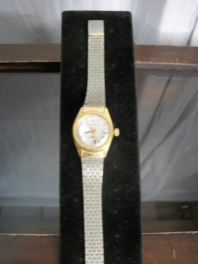 Vintage Watch Women's Timex Mechanical Analog, Calendar, Silver & Gold Toned, Water Resistant, Tested