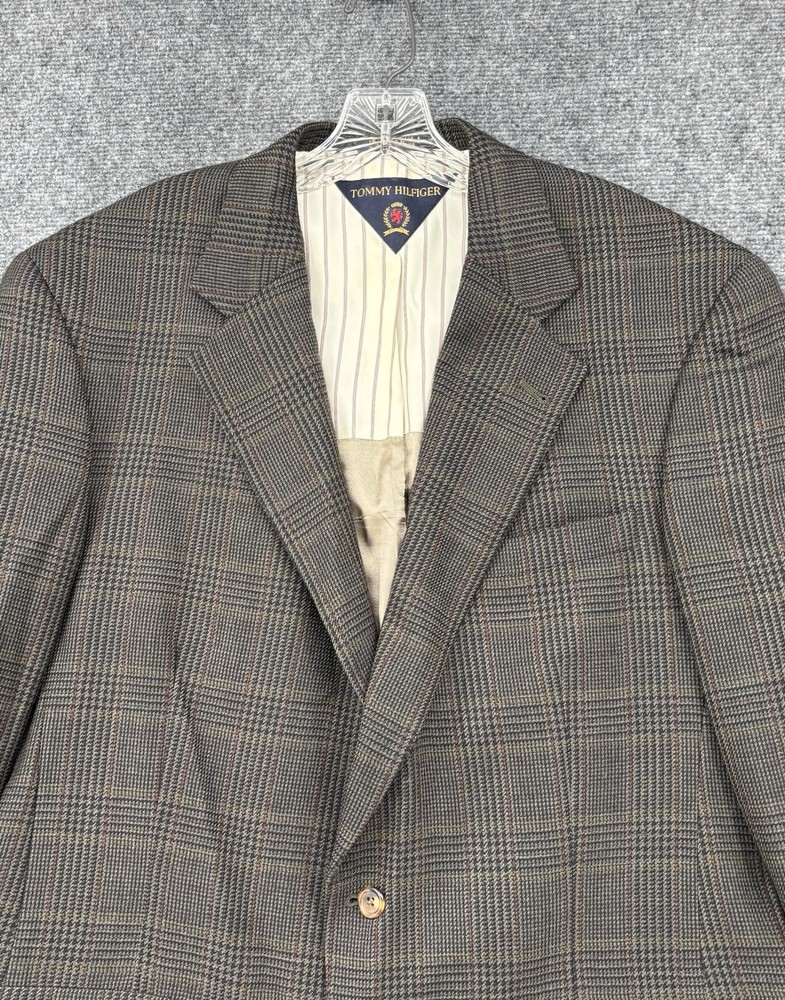Vintage Tommy Hilfiger 42L Brown Glen Plaid Sport Coat Blazer for Men
