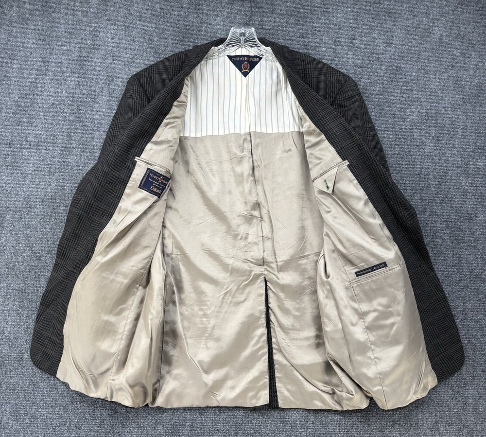 Jacket/Coat Length: Mid-Length Style: Suit Coat Jacket Cut: Single-Breasted Occasion: Business, Formal, Wedding Fit: Regular Department: Men Size Type: Regular Garment Care: Dry Clean Only Brand: Tommy Hilfiger Chest Size: 46 Color: Brown Jacket Vent Style: Single-Vented Jacket Front Button Style: Two-Button Number of Pieces: 1 piece Type: Blazer Theme: Classic, USA, City, Designer, Outdoor, Preppy, Retro, Teacher, Wedding Country/Region of Manufacture: United States Waist Size: 44 in Features: Inner Pockets Pattern: Plaid Size: 42