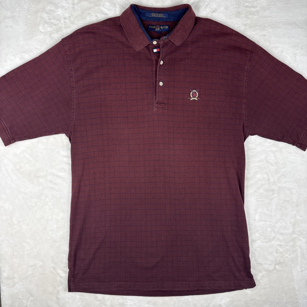 Vintage Tommy Hilfiger Golf Polo Mens XL Burgundy Geometric Y2K Classic Prep