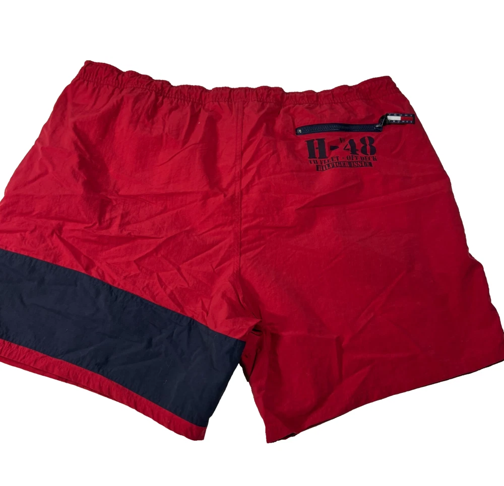 Vintage Tommy Hilfiger Red Y2K Swim Trunks Drawstring Shorts XL