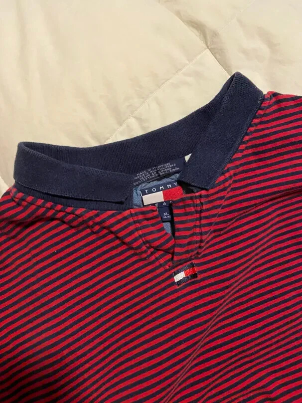 $ 13.2Tommy Hilfiger Men's XL Red & White Striped Long Sleeve Cotton Polo Shirt