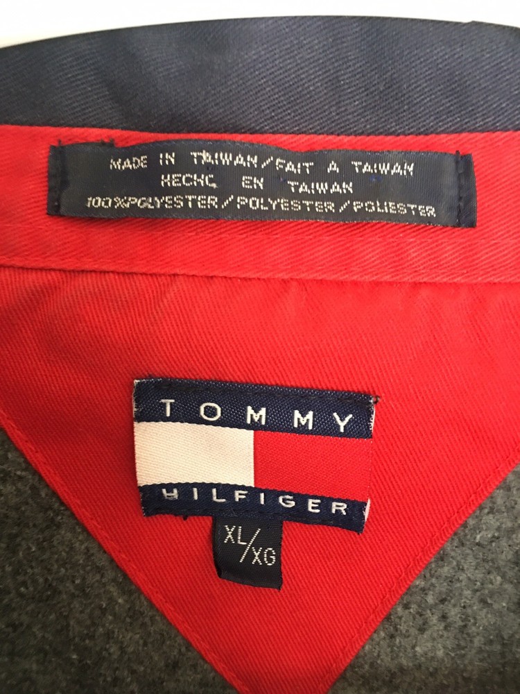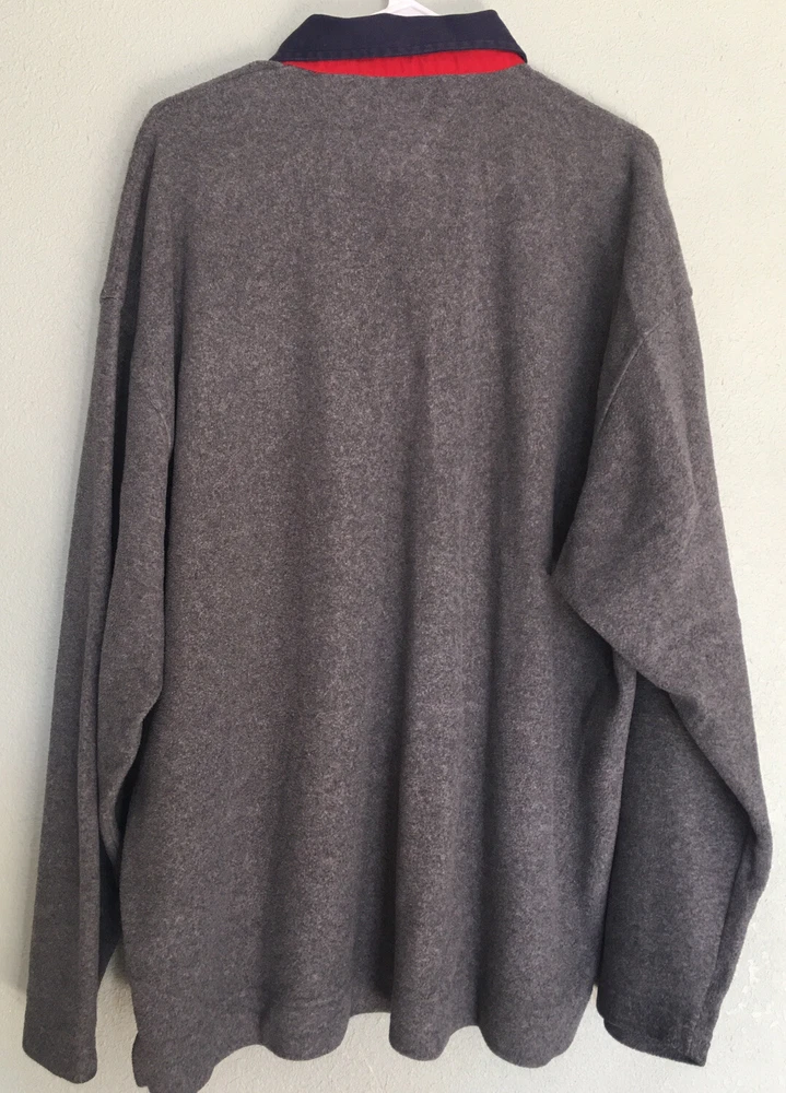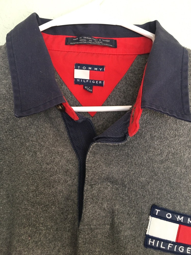 Vintage Tommy Hilfiger XL Fleece Pullover Collared Gray Sweatshirt. Chest 54in. Length 30in. In good used Condition.