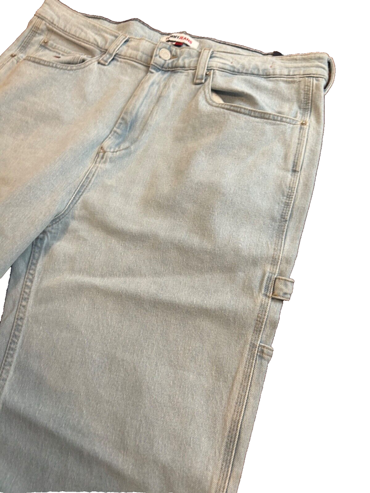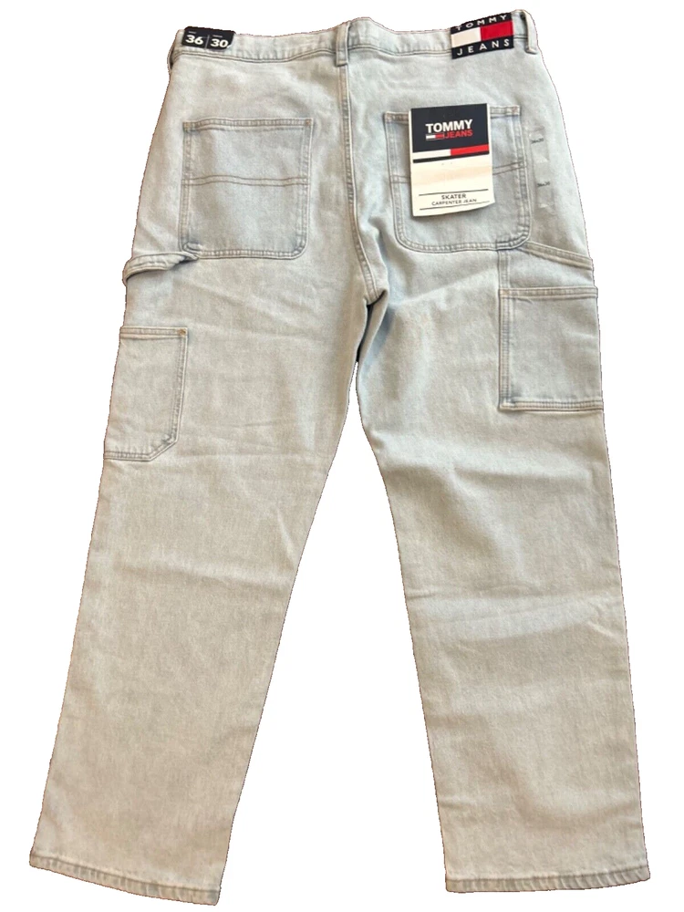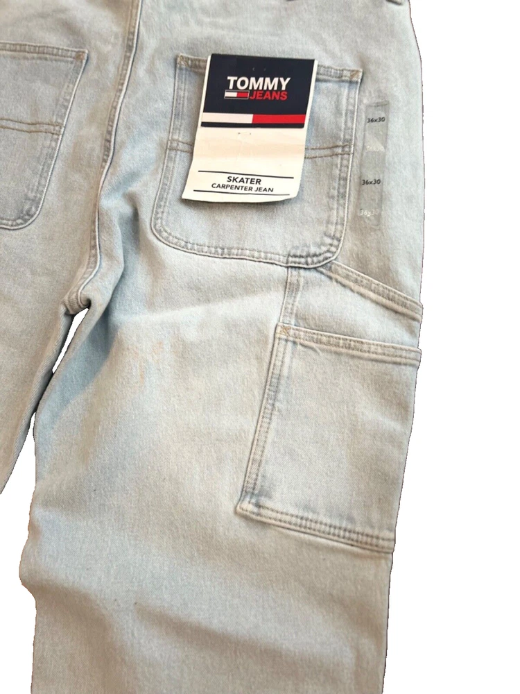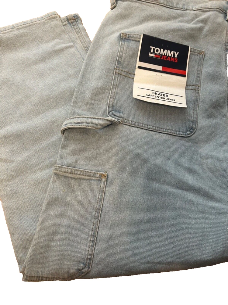 Elevate your style with these vintage 2000 millennium Tommy Jeans Skater Carpenter Light Denim jeans. Made with 100% cotton fabric, these jeans are comfortable, breathable, and perfect for any casual occasion. The light denim color, relaxed fit, and cargo pocket type make them a versatile addition to any wardrobe. Featuring a zip and button closure, as well as accents like straps and a logo, these jeans have a unique look that is perfect for skaters and carpenters alike. With a waist size of 36 inches and a unit quantity of 1, these jeans are a great choice for anyone who wants to add a touch of vintage style to their wardrobe.