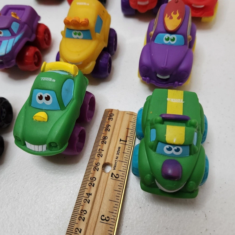 10 little Tonka toy vehicles measurement in photo heavy plastic material