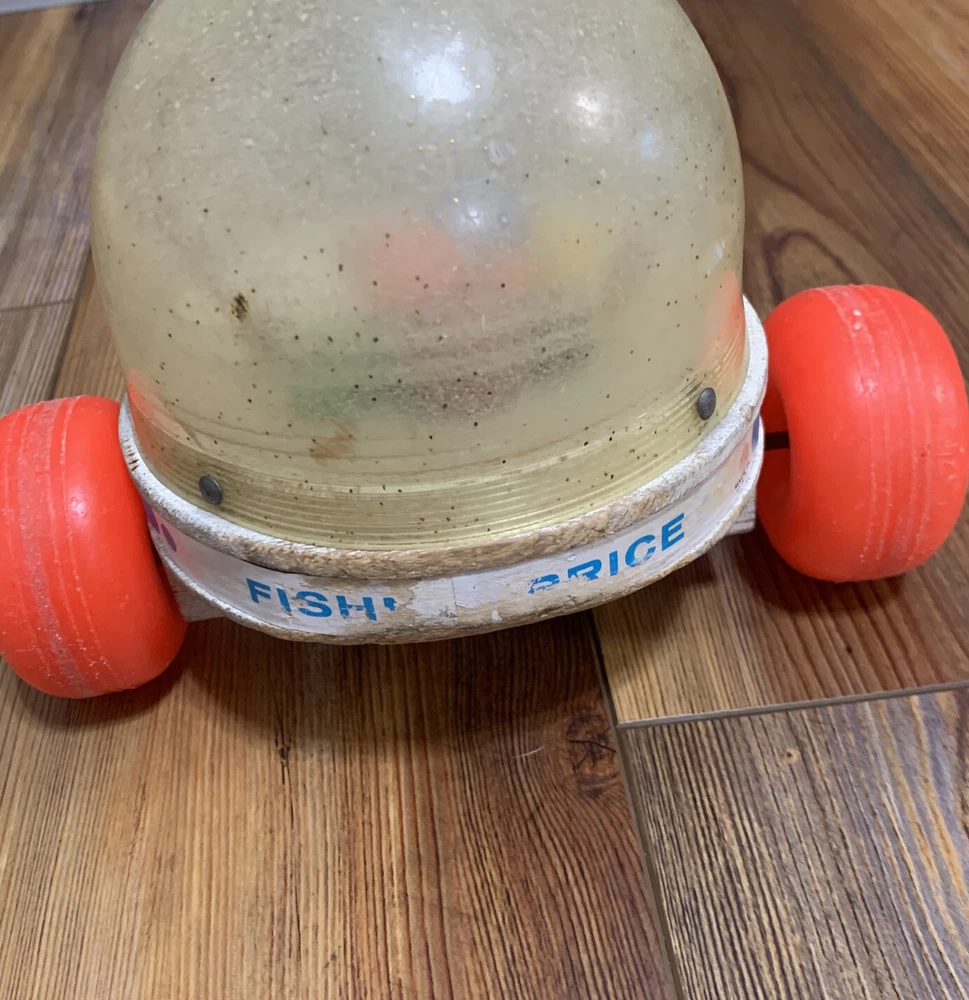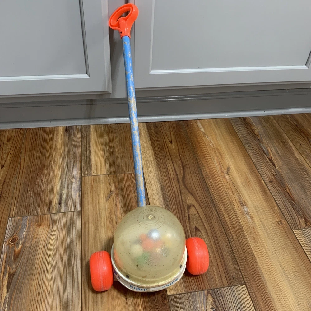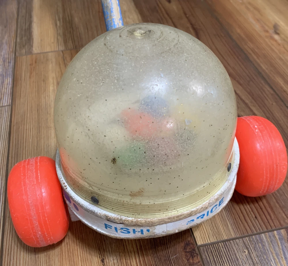 This vintage Fisher-Price Corn Popper Rolling Vacuum Toy is a classic, complete and made in the USA. It brings back memories of childhood with its brightly colored design and Popcorn Roller Ball character family. The toy is perfect for children aged 1-2 years or 12 months & under This vintage toy is used but it still rolls and pops! 😁 See photos for details.