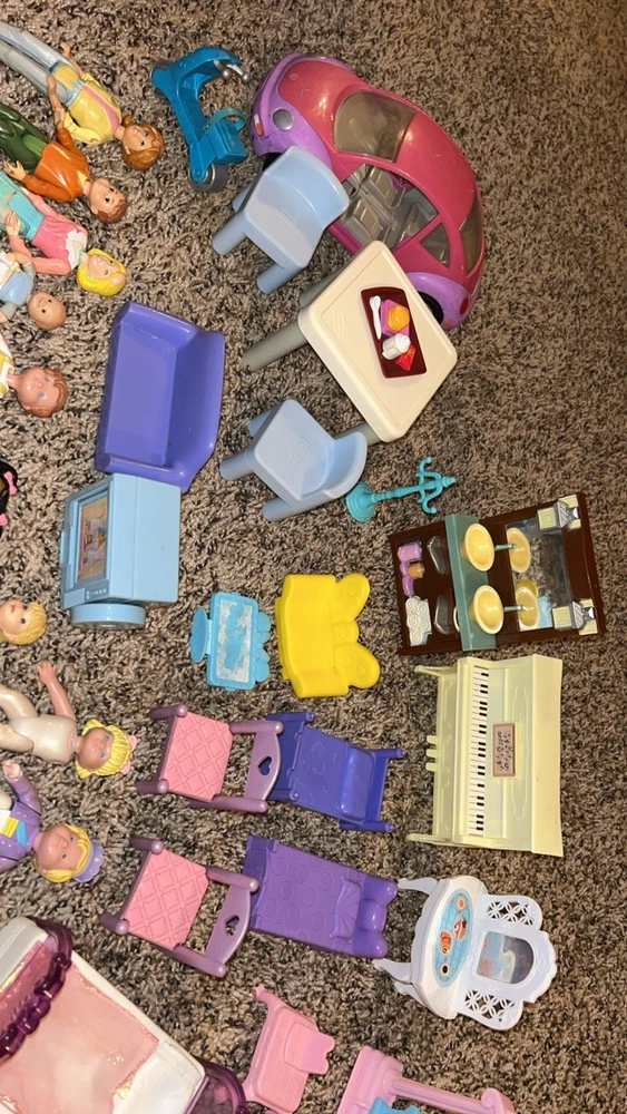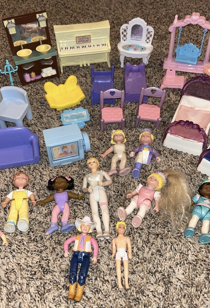 This Vintage Toy Lot includes a Fisher-Price Loving Family Doll House along with other toys. The dollhouse is a beloved classic that allows children to create and play out family scenes, promoting imaginative play and storytelling. With its durable construction and timeless appeal, this vintage toy set is sure to provide hours of enjoyment for children and collectors alike. Everything you see in photos comes together.