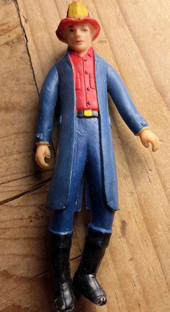 1975 Fisher Price Fire Chief (3.5”tall) 60’s LIDO WW2 soldier (6” tall) 70’s MEGO Tarzan ((6” tall) 70’s Lucky Luke gunslinger ((6” tall) Big Bird in wagon 90’s McDonalds Happy Meal “Chomp” 60’s Marx president series Roosevelt and Van Buren (3” tall) 70’s Gumball “Noah” (2” tall) Plus pile of assorted vintage toys I know nothing about