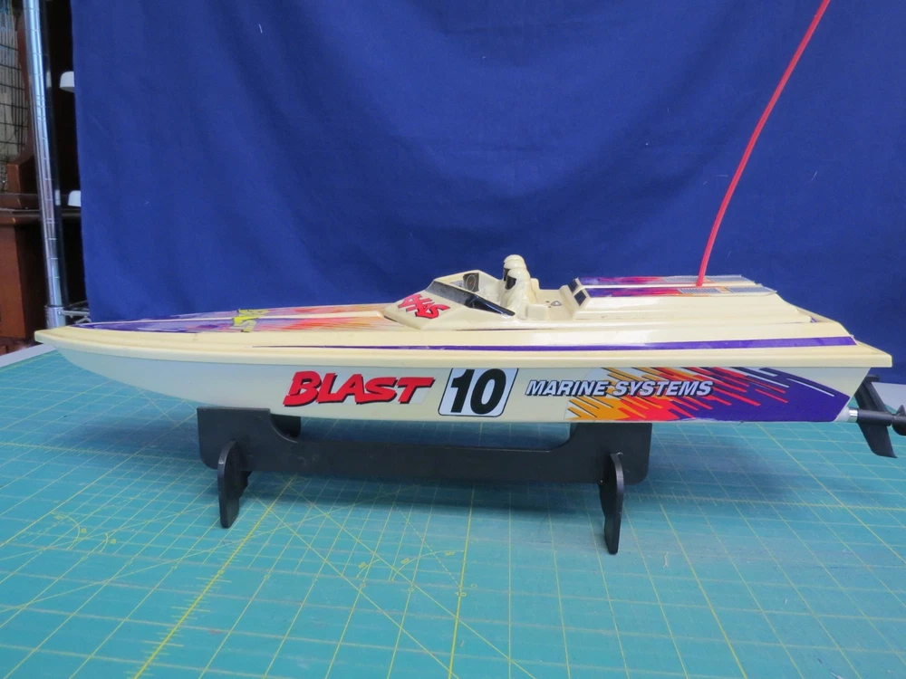 This item is offered for sale by a small local charity shop. All proceeds stay local to our community and help a variety of local needs including food shelves, fire and ambulance, and schools as well as families in need. Thank you for considering our offering. This is an untested remote control Marine Systems 10 boat with remote control, stand and battery packs. Untested. For parts.