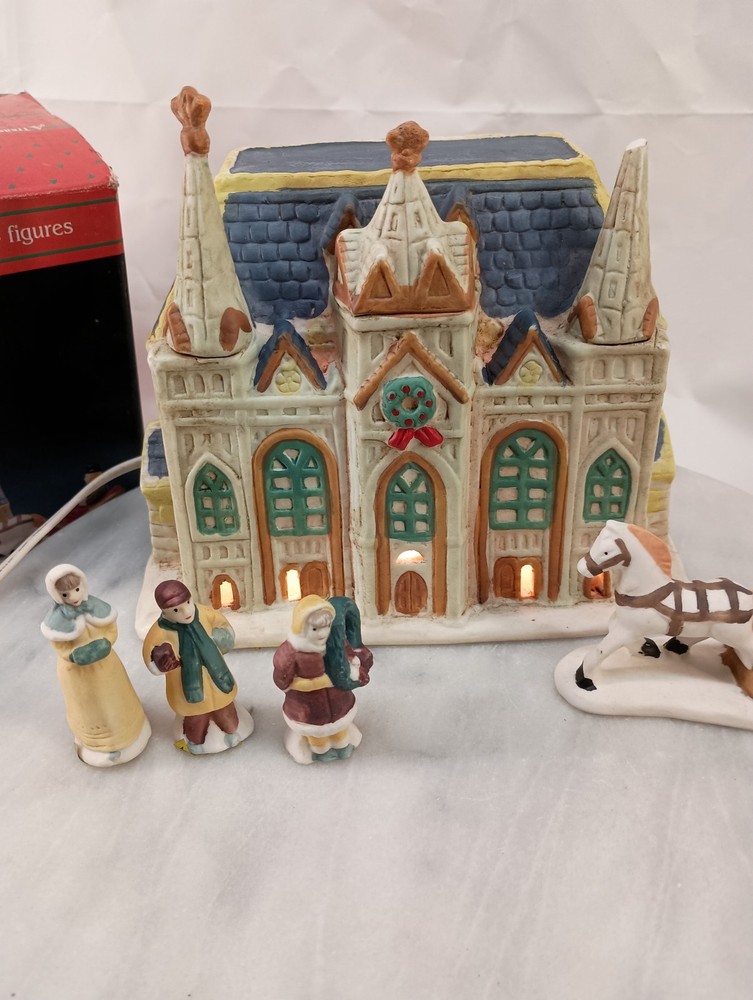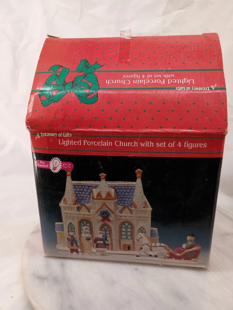 The Vintage Treasury Gifts Lighted Porcelain Church with Figures is a charming Christmas village collectible made of porcelain. This holiday-themed piece features detailed village figures and a festive lighted church design, perfect for adding a touch of nostalgia and whimsy to any Christmas decor collection. Ideal for collectors or for those looking to create a cozy village display during the holiday season. Thank you for visiting my listing today and thank you for your interest in this item! My goal is to have a pleasant transaction resulting in a satisfied customer. I hope any transaction between us leaves you with a feeling of confidence knowing you can trust me and the items I offer here. *Most if not all my listings are set to accept offers. Feel free to send an offer and I will be happy to consider it!! *Please contact me with any questions or concerns and I will be happy to help. *Always examine the photos carefully, and if in doubt, email me with any questions you may have. *Please note that condition statements are offered as a guide only. They will always be somewhat subjective and reflect our opinion, which may not necessarily agree with someone else's opinion. PLEASE READ: I aim to please and I want my buyers to have a positive transaction with me. If you have questions, concerns, or special requests related to any of my items I hope you will contact me so we can work them out to your satisfaction. I sell my items to give you a great item at a decent price while making a little profit at the same time. If you feel the item you are interested in is too pricey do not hesitate to send me a fair offer and I will consider it. My goal is to satisfy your needs and mine so both parties can benefit. SHIPPING: If you prefer a different shipping method or company please contact me and I will do all I can to make that happen. If you have concerns or requests about the packaging of your item contact me and I will do all I can to accommodate them. Shipping costs are based on location in each state or country, the costs always differ. After I have received your payment I will ship your item out within 3 business days or less excluding weekends and holidays. BEFORE PURCHASING & BIDDING: **Please see all the pictures. I do not have great photography skills but I try to get the most accurate photos I can. If you are unsure about something you see in a photo contact me so I can do what I am able to answer your concern about the item. **I cannot stress enough that if you have any questions or concerns please contact me before purchasing and bidding. Communication can solve so much. **As a customer myself, I understand the meaning of customer satisfaction and my goal is to have nothing but satisfied customers. If you are not unsatisfied with your purchase I ask that you please contact me so I can take care of your issue. My goal is for you to be 100% satisfied. INTERNATIONAL BUYERS WELCOMED - PLEASE NOTE: I welcome International buyers! Please be aware that any custom/duties/taxes that the parcel might incur once it is out of the USA are the responsibility of the buyer. Please check with your country's customs office to determine what these additional costs will be prior to bidding or buying. Please refer to the eBay Site Map for more information if needed.