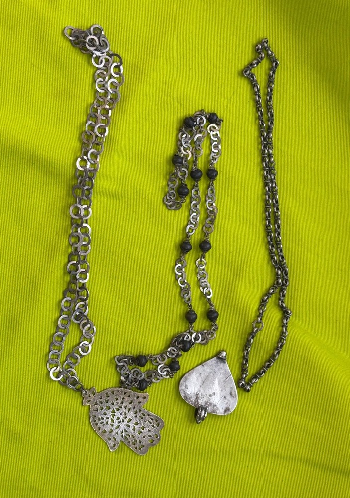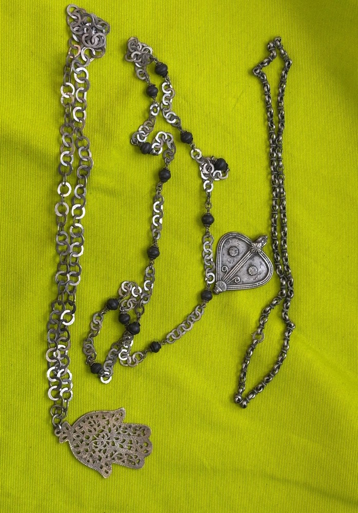 Please take close look of the items in the photos for any details or flaws if not stated Estate Finds or Resale Items All Items Shipped with Care Enjoy. Vintage Bedouin Tribal Hamsa Necklaces Jewelry Artisan Handmade 3 Necklaces 2 pendants 28ins long 163.3g
