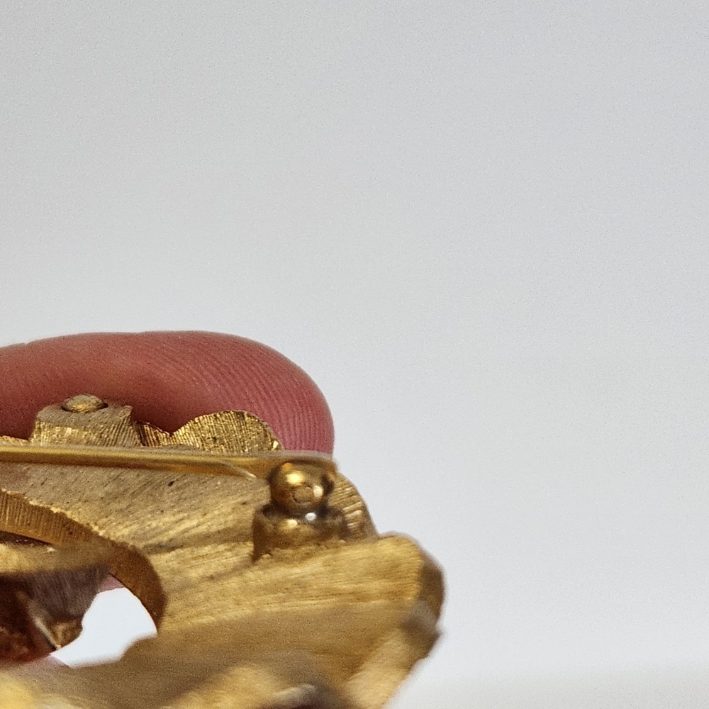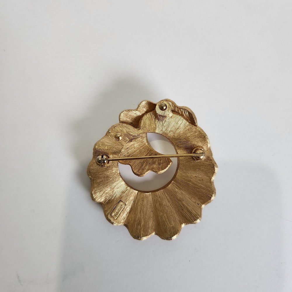 Crown Trifari Signed Brooch Modernist Shell Textured Goldtone Pin Vintage Signed. Condition is Pre-owned. Shipped with USPS Ground Advantage.