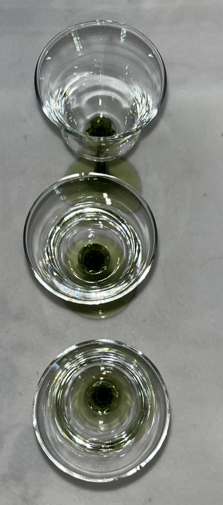 Partylite P7998 Radiant Glow Stemmed Trio Green Stem Clear Votive Candleholder. These are in like new condition with NO chips cracks or repairs. Please review all pictures for proper assessment of vintage preowned condition. Please note there is no original packaging.