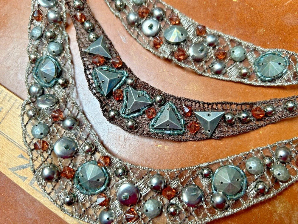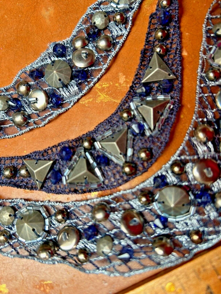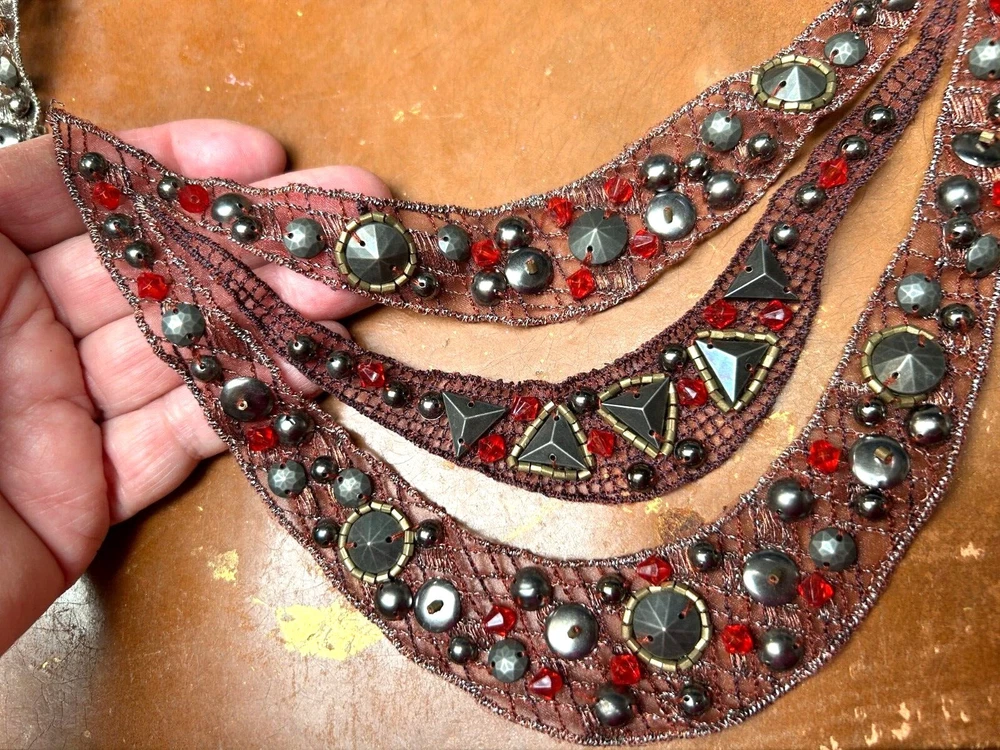 Vintage Triple Row Metallic Collar Hand Sewn 7x8 Studio Clearance Sale