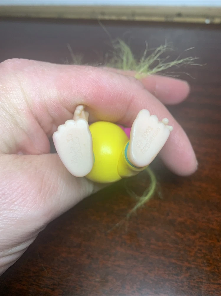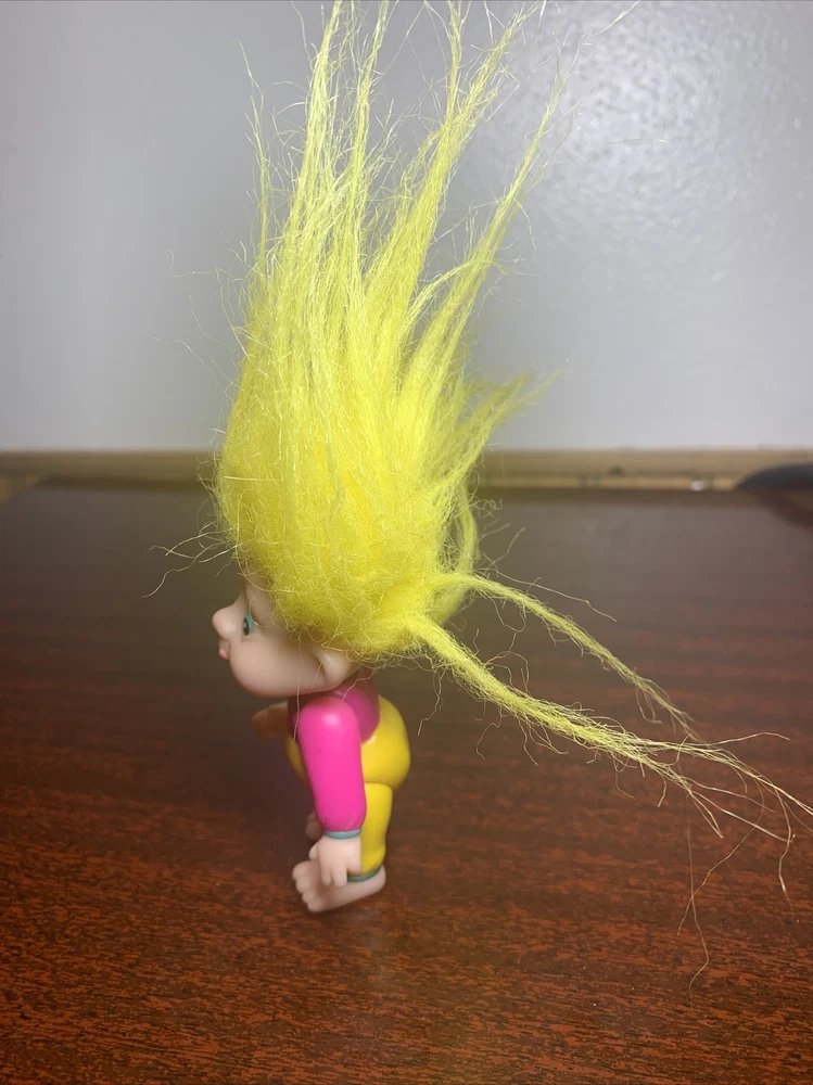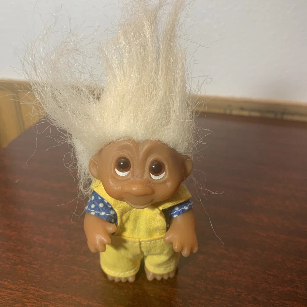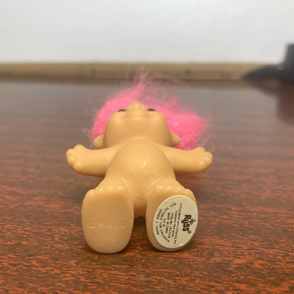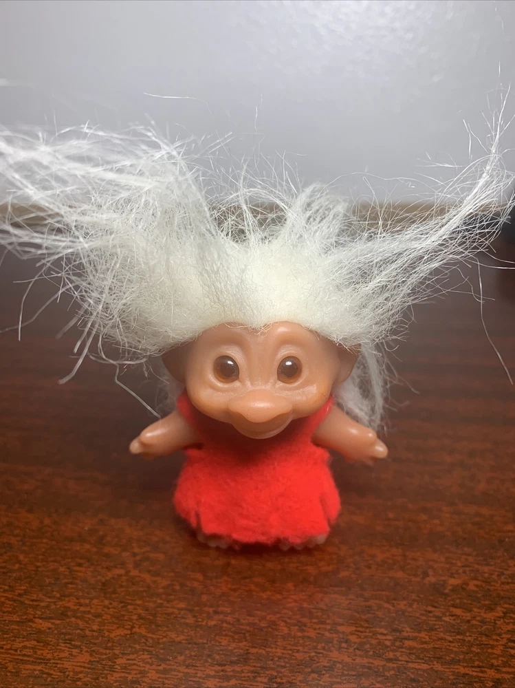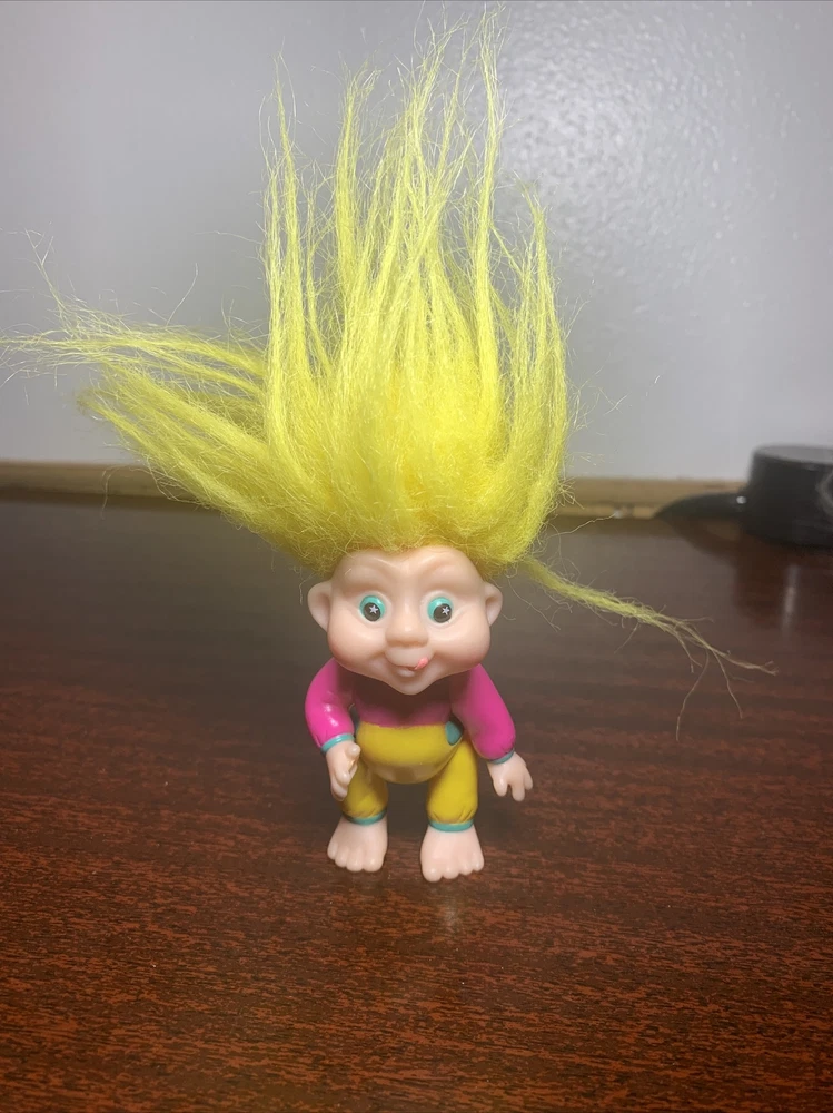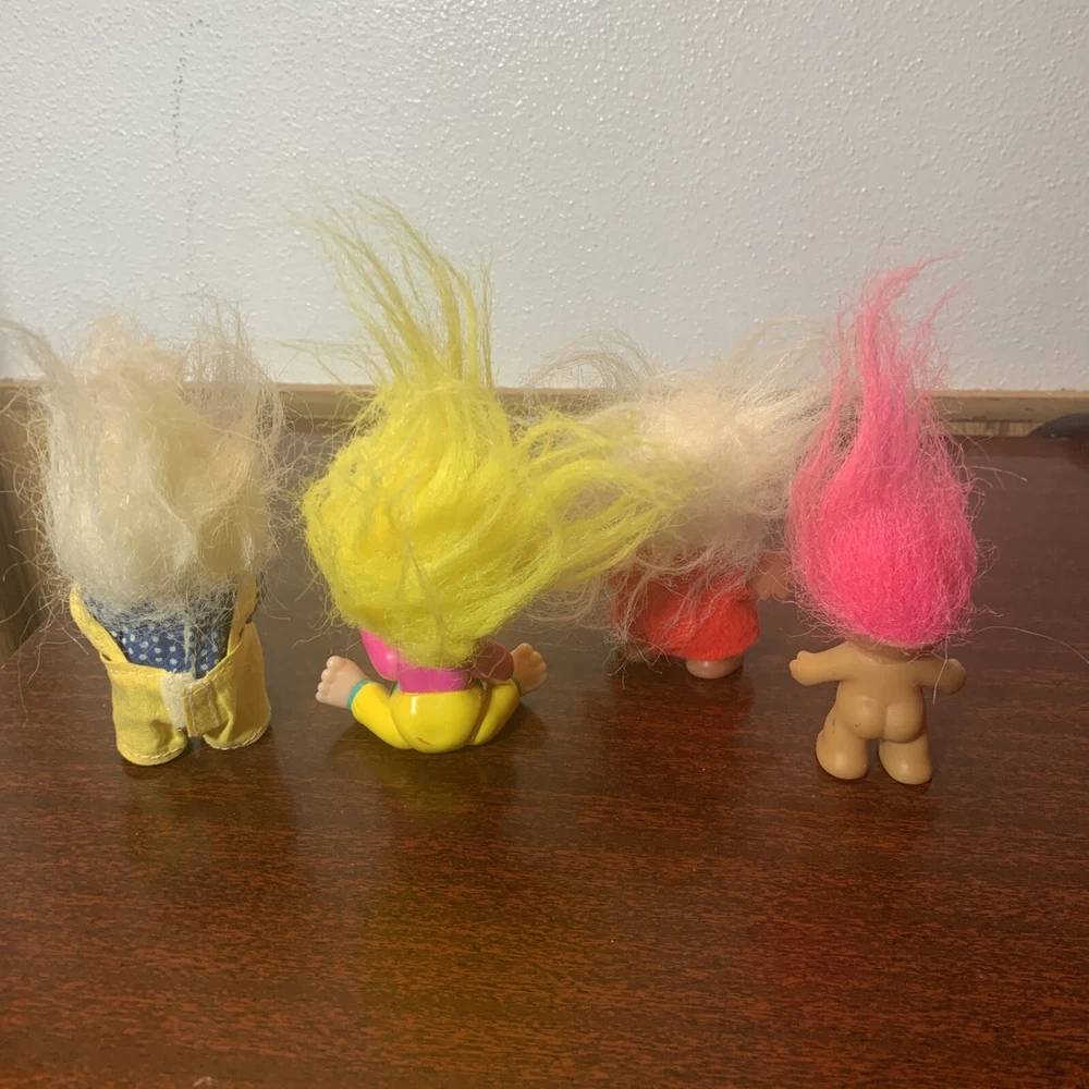 Vintage Trolls lot of 4: Russ Berrie, Applause, & DAM, from 1986-1991 Description of each: 1st troll: 1986 DAM 3" Norfin 'Grandpa" Troll, white hair, amber eyes, yellow overalls, blue shirt with white polka dots, not poseable, rare 2nd troll: 1991 Applause 3" Magical Baby Troll, star eyes, yellow hair, poseable Brings good fortune for those who believe and pretty darn cute as well 3rd troll: DAM 3" 'Grandma' Troll, white hair, red felt dress, not poseable This one is a conundrum, it does not have a year stamped on it's feet, but since it was made in China, the earliest it can be made is 1985. The style of the dress seems quite rare in red as well, found others similar but not red. 4th troll: Russ 2" Baby Troll, pink hair, amber eyes, not poseable, #18345B Not sure what year this was produced, not stamped