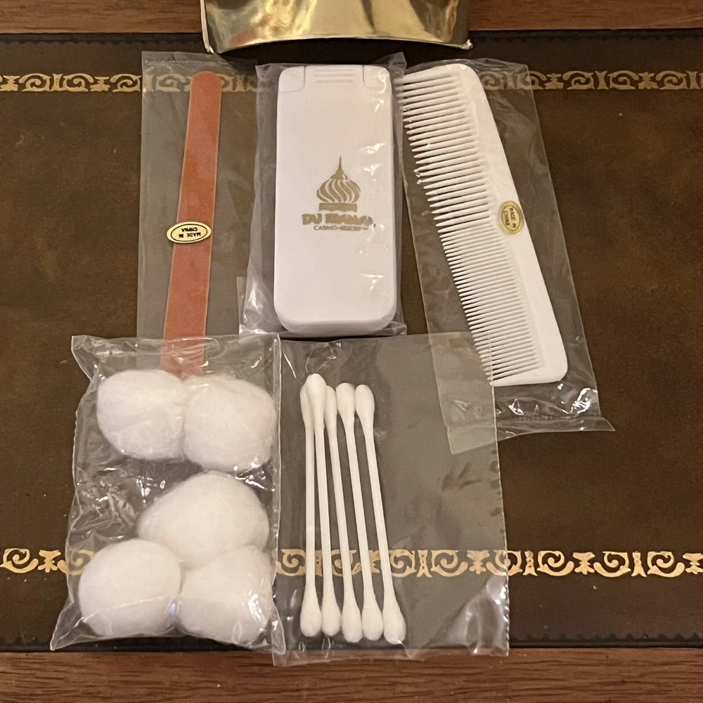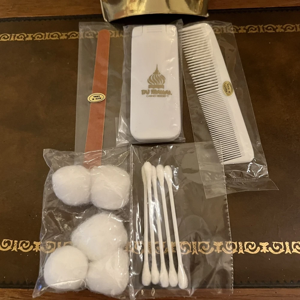 This vintage Trump Taj Mahal Vanity Kit is a must-have for any casino memorabilia collector. The kit features a beautiful design with intricate details that showcase the iconic Taj Mahal casino in Atlantic City, NJ. The kit includes all the necessary items for a complete vanity set, including a sink, faucet, and toiletries. It's perfect for displaying in your collection or for use in your daily routine. Don't miss out on the opportunity to own this unique and rare piece of casino history.