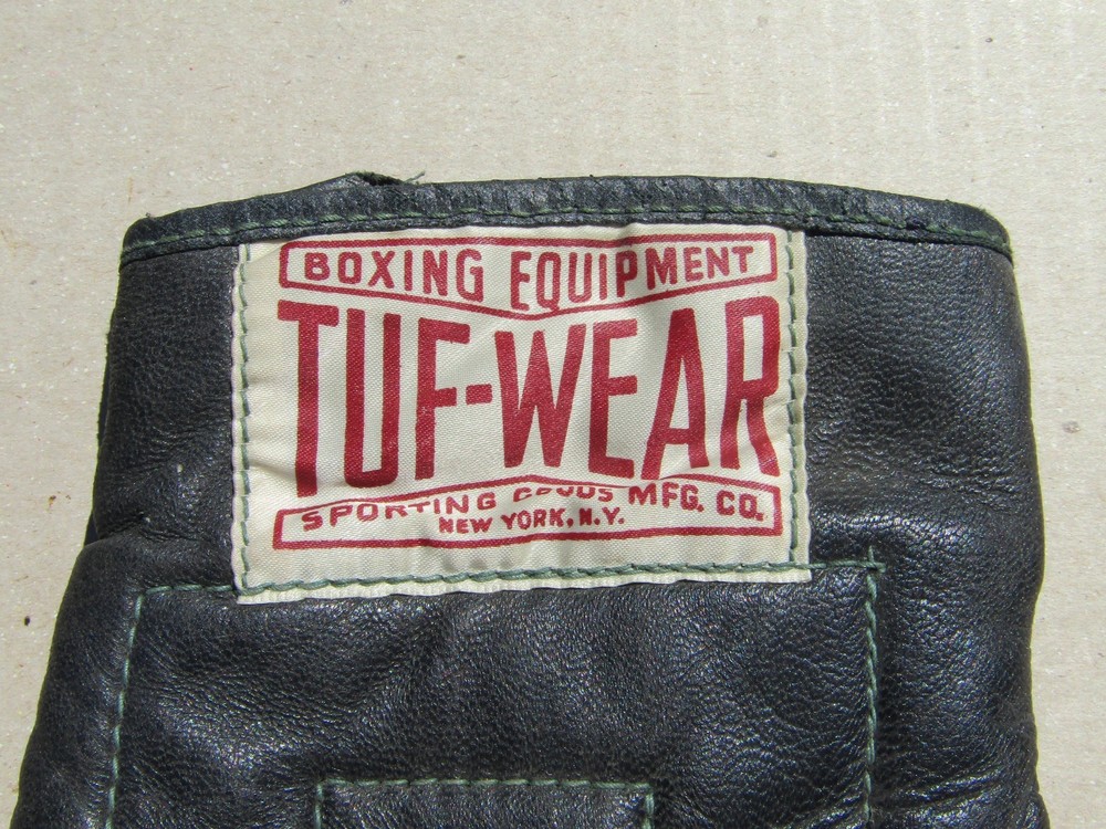 Up for sale is a pair of Vintage Tuf-Wear Bag Boxing Gloves. There is a couple of tears/holes in the leather.
