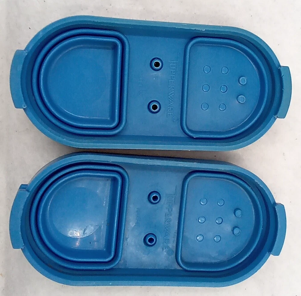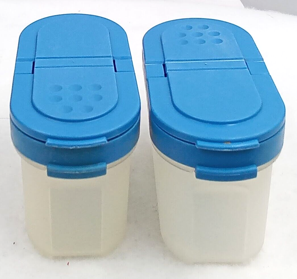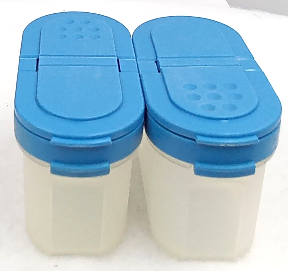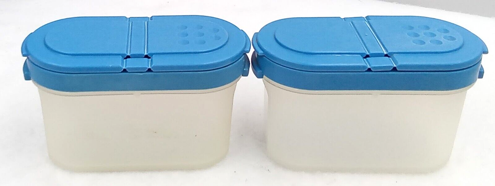 1. These Tupperware spice containers are fantastic! The dual flip lids keep spices fresh and secure, and the modular design stacks neatly. The vintage blue color adds a charming retro touch to any kitchen. Sturdy, practical, and in great condition—perfect for organizing spices or small pantry items. Seller packs with care and offers fair shipping—highly recommend!