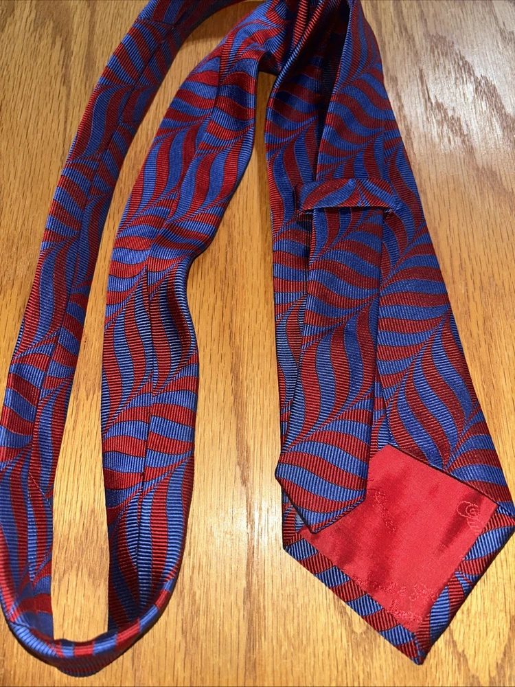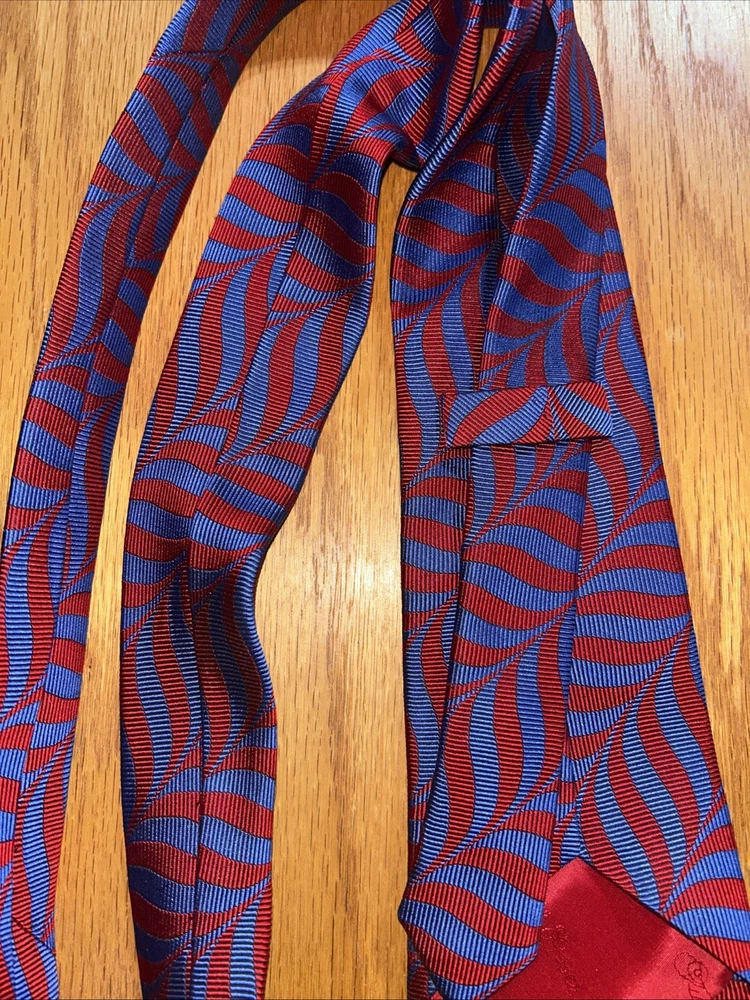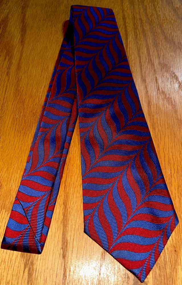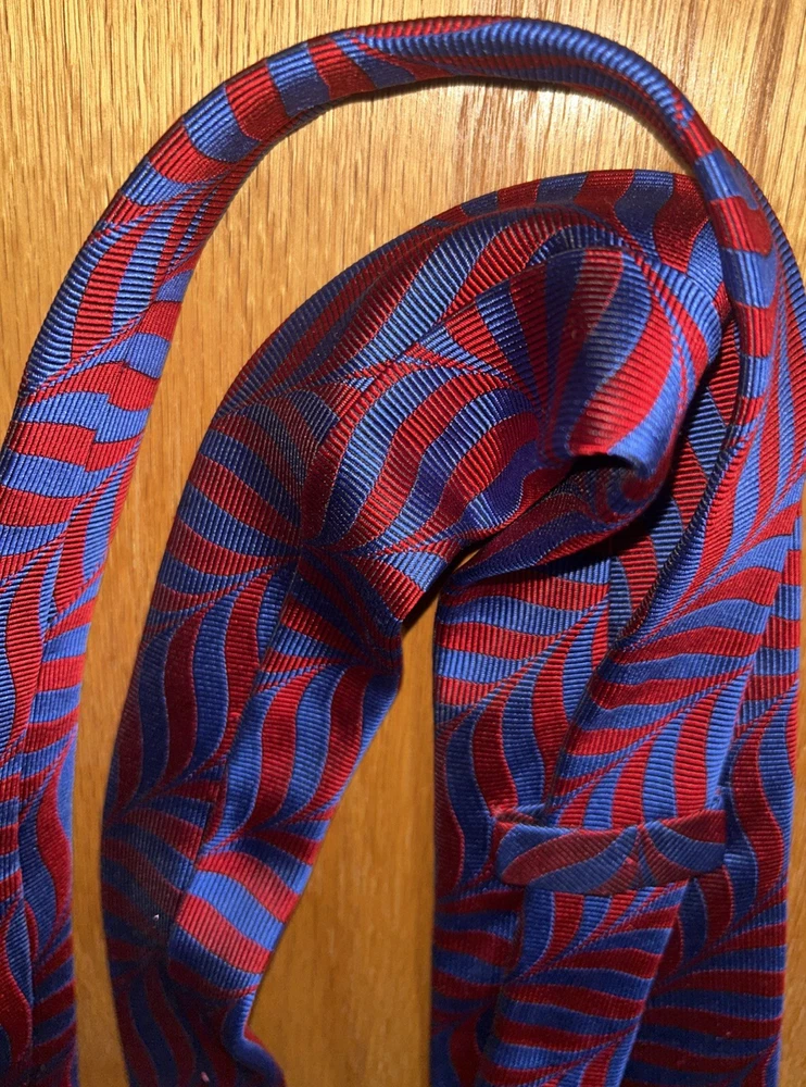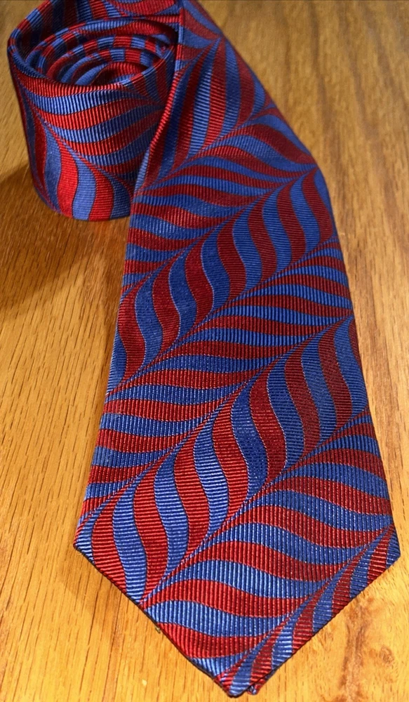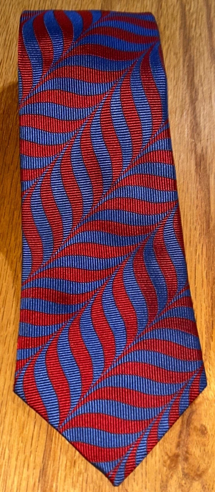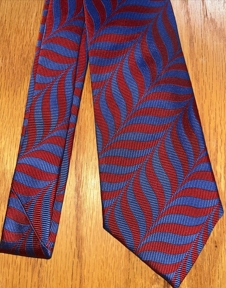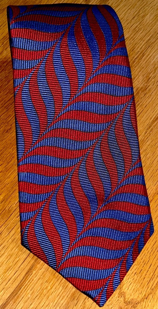 Vintage Turnbull & Asser London England Mens Tie Red & Blue Wavy Lines 100% Silk