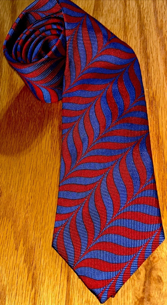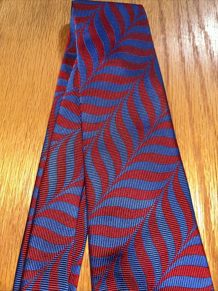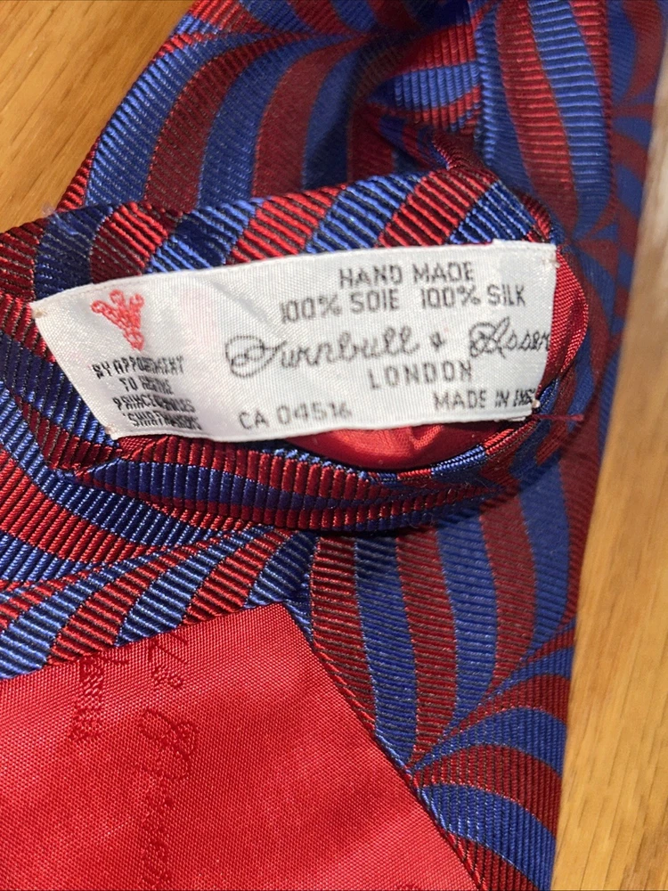 Vintage Turnbull & Asser London England Mens Tie Red & Blue Wavy Lines 100% Silk Handmade Luxury Tie Classic Size 57” Long 4” Wide Great Overall Condition Very Nice To Add To Any Tie Collection Please See All Pics As Part Of Full Description