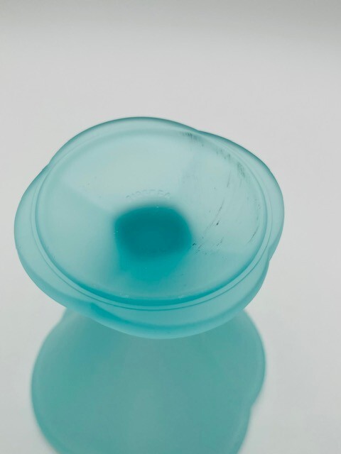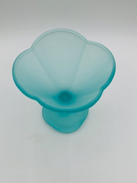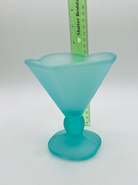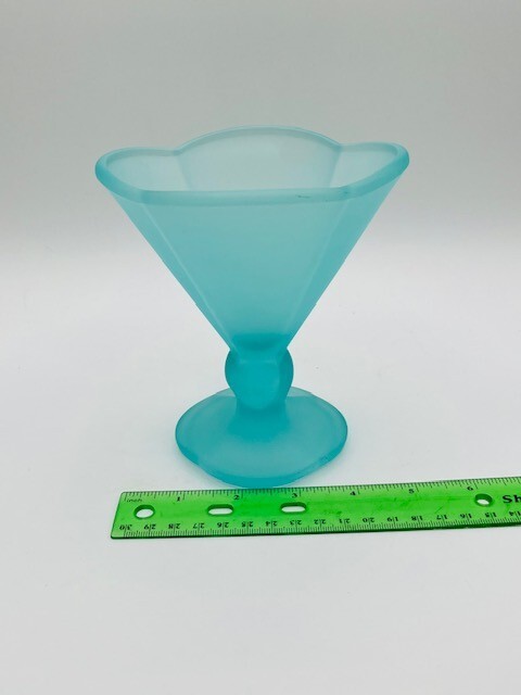 This vintage turquoise glass dish is perfect for ice cream or a fun dessert. Its vibrant blue color adds a pop of personality to any table setting, perfect for serving up sweet treats in style. It is in very good condition with no chips or cracks.