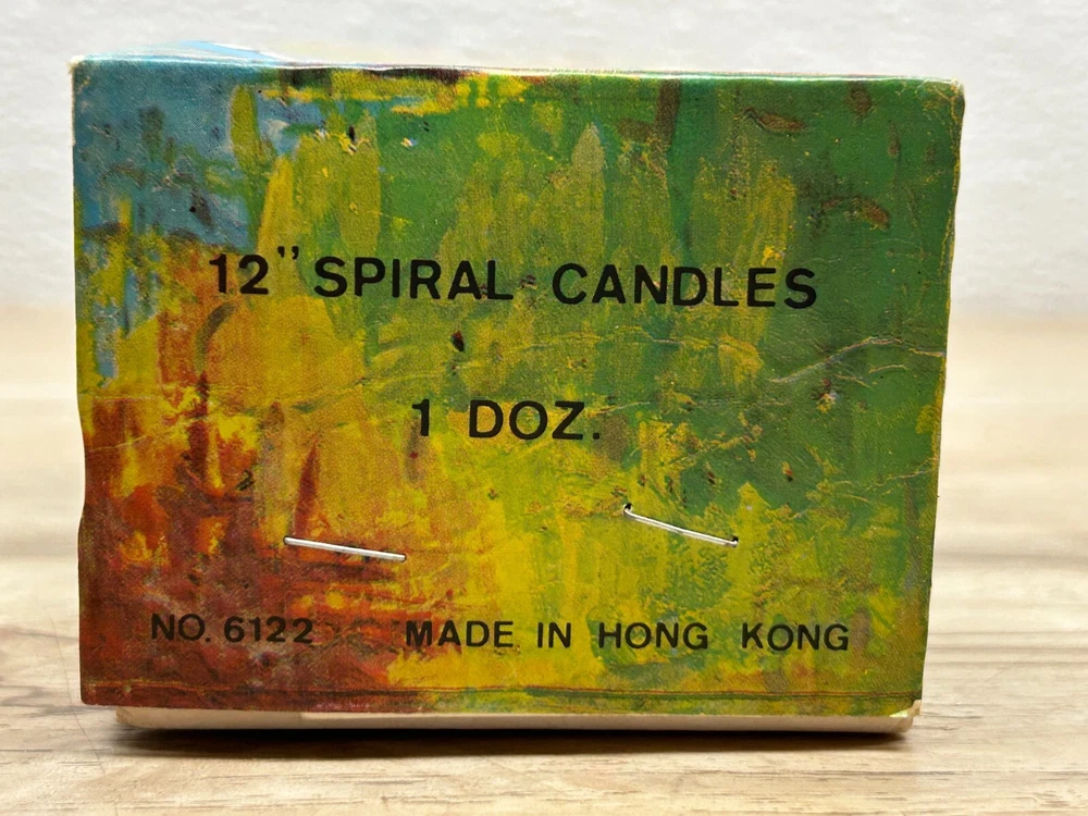 Vtg Twisted Spiral Odorless Smokeless Dripless 12" Holiday Candles 12Pc Box Made In Hong Kong.No cracks,no chips,no broken pieces.There are few that are little bended from age-please see all pictures