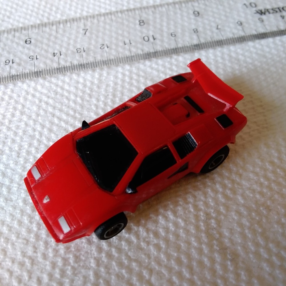 Vintage Tyco Lamborghini Countach Ho slot car, red 1988. Tested on track. Works great... Super Fast! Broken spolier (see pics). Could use a Cleaning and new tires.
