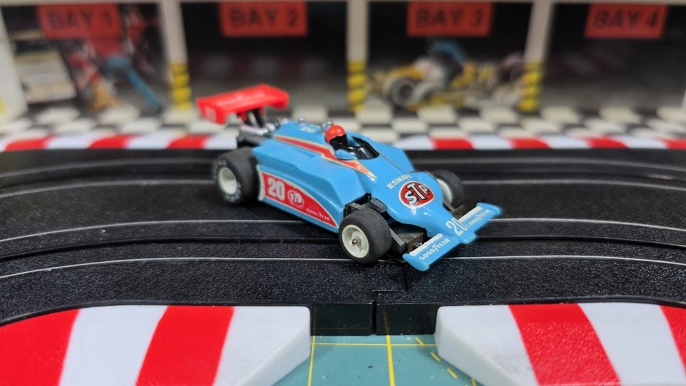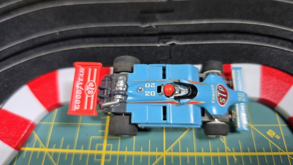 Hello, For sale is a Blue Indy Patrick STP. Glued rear wing. Pictures are part of the description to show condition details so please look closely. These items have been in storage and may need tires/brushes/contacts/other parts, may need cleaning, and may show signs of wear from use and age. Please ask any questions you may have before placing a bid or making an offer. I want you to be satisfied with your purchase. US shipping only. Track and building are not included for sale and are for listing display only. I am selling off a large collection of HO slot cars, tracks, sets, parts, and accessories so keep an eye out for more items. Thank you for taking the time to take a look. Eric "Norm"