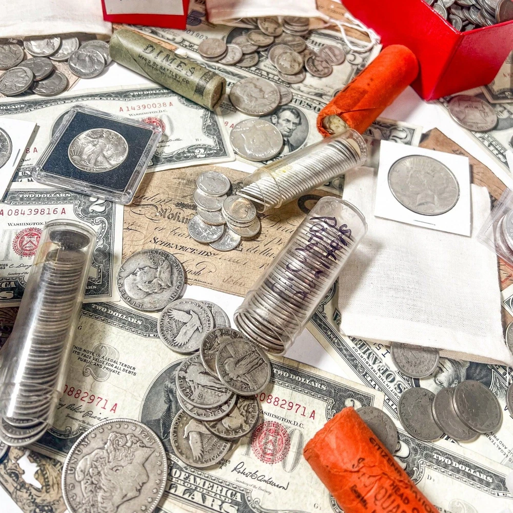 Ready to take your growing coin collection to the next level? There’s never been a better time to invest in premium coins! Because of a big estate liquidation blowout sale, each investment lot now includes more guaranteed top quality coins than anything else on the market. THESE INVESTMENT WORTHY LOTS ARE A GREAT WAY TO START A COLLECTION, INVEST IN YOUR FUTURE OR EVEN ADD TO AN EXISTING COLLECTION, SO BUY IT NOW WHILE YOU STILL CAN! Each lot contains two dozen pieces plus (24+) pieces of rare coinage and currency, and is fully guaranteed to include the following: 24 + Old United States Coins & Rare Collectables FIVE (5) Silver Pieces (pre-1965 silver or bullion) ONE (1) .999 Fine Valcambi Silver Bar or Round - .999 fine - Or Additional Silver coin ONE (1) Piece of Old United States Paper Money (Red Seal, Silver Certificate or Gold Note) THREE (3+) 60 Year-Old (BU) Uncirculated Coins ONE (1+) 100+ Year-Old 90% Silver Coin w/readable date TWO (2) Vintage Indian Head Pennies at least 110 years old! ONE (1) Grab Bag of FIVE (5) coins minted in San Francisco (1860-1958) THREE (3+) WWII-era Coins Made from Scarce Materials FIVE (5+) Pre-1940 (1909-1939) Wheat Pennies TWO (2) Vintage U.S. Nickels at least 85 years old All coins will be Premium Quality & Fully Readable Dates And that’s not all. Your investment lot is also guaranteed to include one coin featuring: The Iconic Lady Liberty Design The Symbolic Native Indian Design Multiple Iconic Pre-1970 Presidents Own a Piece of American History With over two dozen pieces of rare coins and currency, each lot provides unbelievable access to premium quality coins and real silver bullion. On top of that, each lot comes with a FREE protective bag to ensure that your valuable coins retain their value. Satisfaction, Guaranteed. Here’s how confident we are in the value contained in each lot of premium quality coins and collectibles – if, for whatever reason, you are unsatisfied with your coins, we offer a full refund within 60 days of purchase. Supplies are limited – order your Investment Lot today We'll keep putting together value-packed lots until our collection runs out, but after that, we're out of options. Take advantage of this incredible offer while it lasts and order your one-of-a-kind collection today - there is no limit on individual purchases! NOTE ABSOLUTELY NO JUNK, NO FOREIGN COINS, NO CLAD, NO MODERN COINS AND NO 40% SILVER WILL BE INCLUDED! THESE ARE ALL GUARANTEED TO BE QUALITY INVESTMENT WORTHY PIECES WITH BOTH NUMISMATIC AND BULLION VALUE!) WHILE OTHER SELLERS SHIP ALL PENNIES, WE DO THE EXACT OPPOSITE! THESE VARIOUS LOTS CONTAIN A MIX OF DENOMINATIONS, TYPES, AND DATES... THE BEST PART IS THAT ALL OF THESE COINS WERE MINTED BEFORE 1965! *Please read the full product description. YOU WILL NOT GET ALL OF THE ITEMS IN THE PICTURES SHOWN . The photos are meant to be an indication of the product you will receive and/or show the entire estate sale that your specific item will come from. You will be receiving a healthy portion of the estate sale in each order. Thank you! How do we price our products? We factor in all shipping costs, merchant fees, advertising costs, along with the current spot price of silver or numismatics into the price and we do our best to include as much value as we can in each order while turning a small profit as a business. If you have questions about this we are happy to explain further.