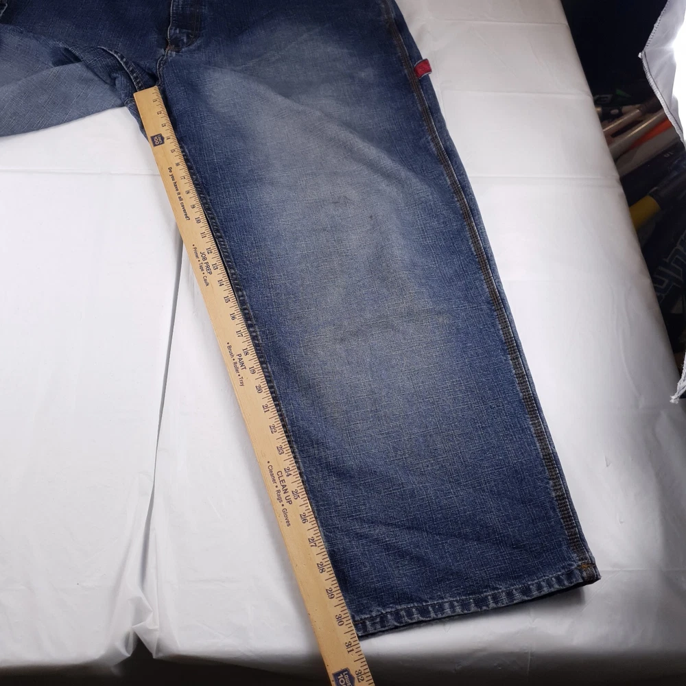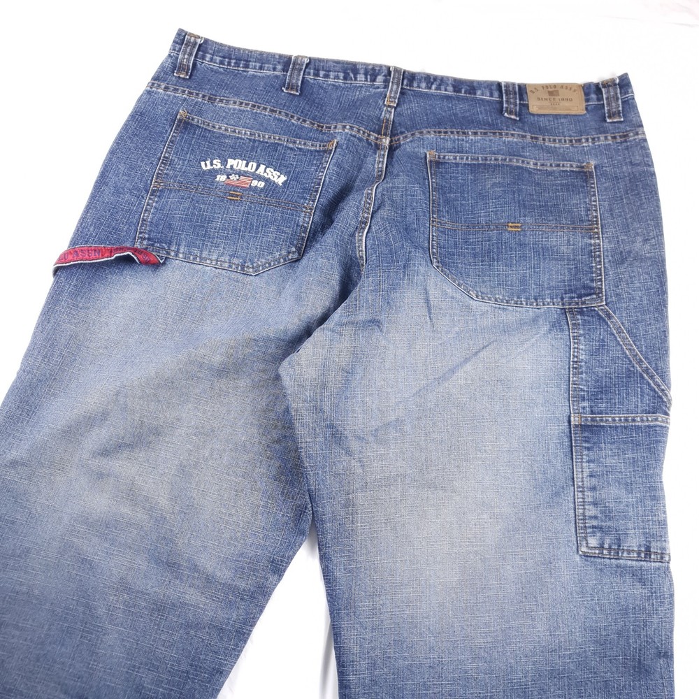 These vintage US Polo Assn jeans are a great find for anyone who loves the Y2K grunge skater style! The baggy carpenter fit is huge and super comfortable, perfect for a laid-back look. Just be sure to check the measurements in the photos since sizing can vary. The stain shown in pic 5 is minor and adds to the vintage charm. Awesome deal for the price!