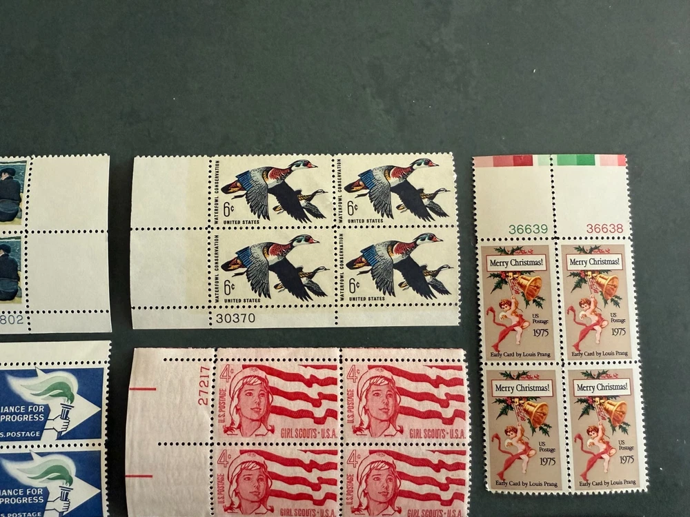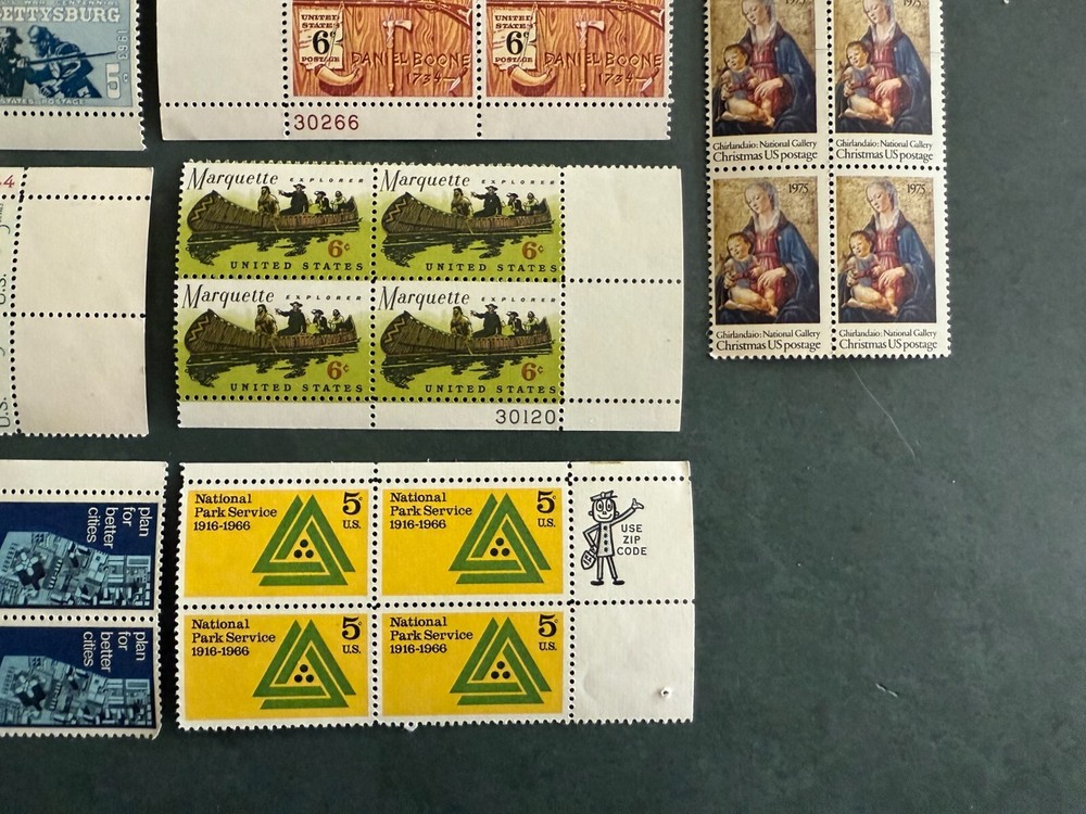 Random stamps all x 4 or 6: Ghirlandaio: National Gallery Christmas US Postage 1973 Daniel Boone - 6 cent National Park Service - 5 cent Marquette Explorer - 6 cent Girl Scouts USA - 4 cent Waterfowl Conservation - 6 cent Mary Cassatt American Artist - 5 cent Early Card by Louis Prang Merry Christmas postage 1975 Plan for better cities - 5 cent Thoreau - 5 cent Gettysburg - 5 cent Alliance for progress - 5 cent Cordell Hull - 5 cent Champion of Liberty - 4 cent Robert Fulton - 5 cent General Federation of Women's Clubs - 5 cent