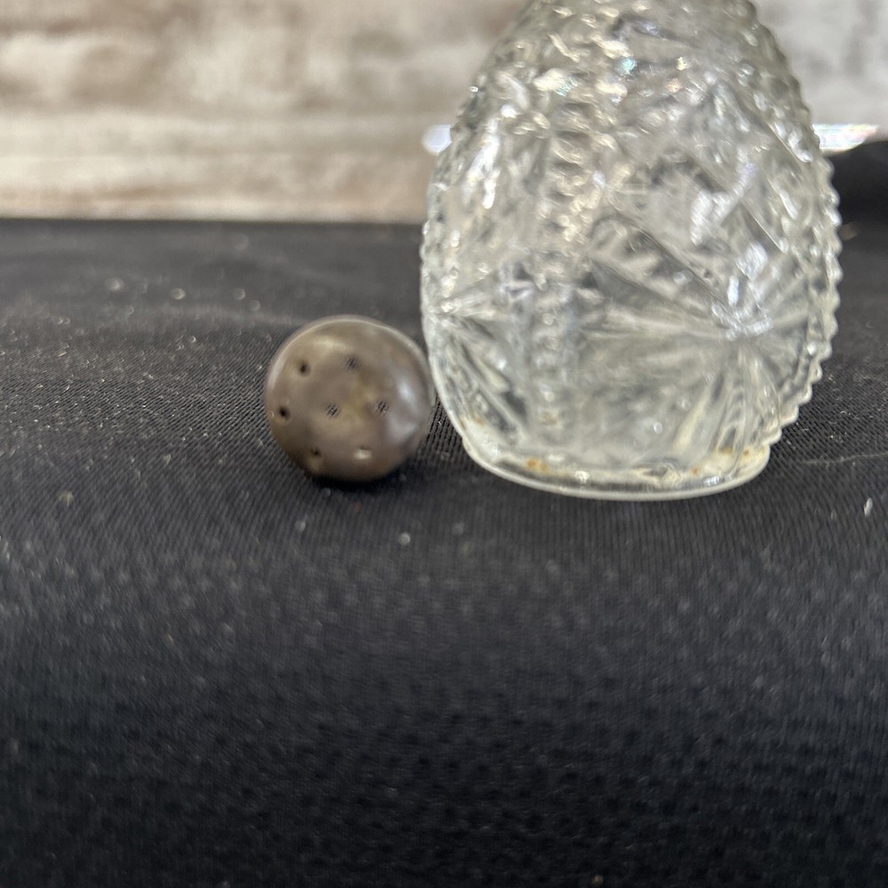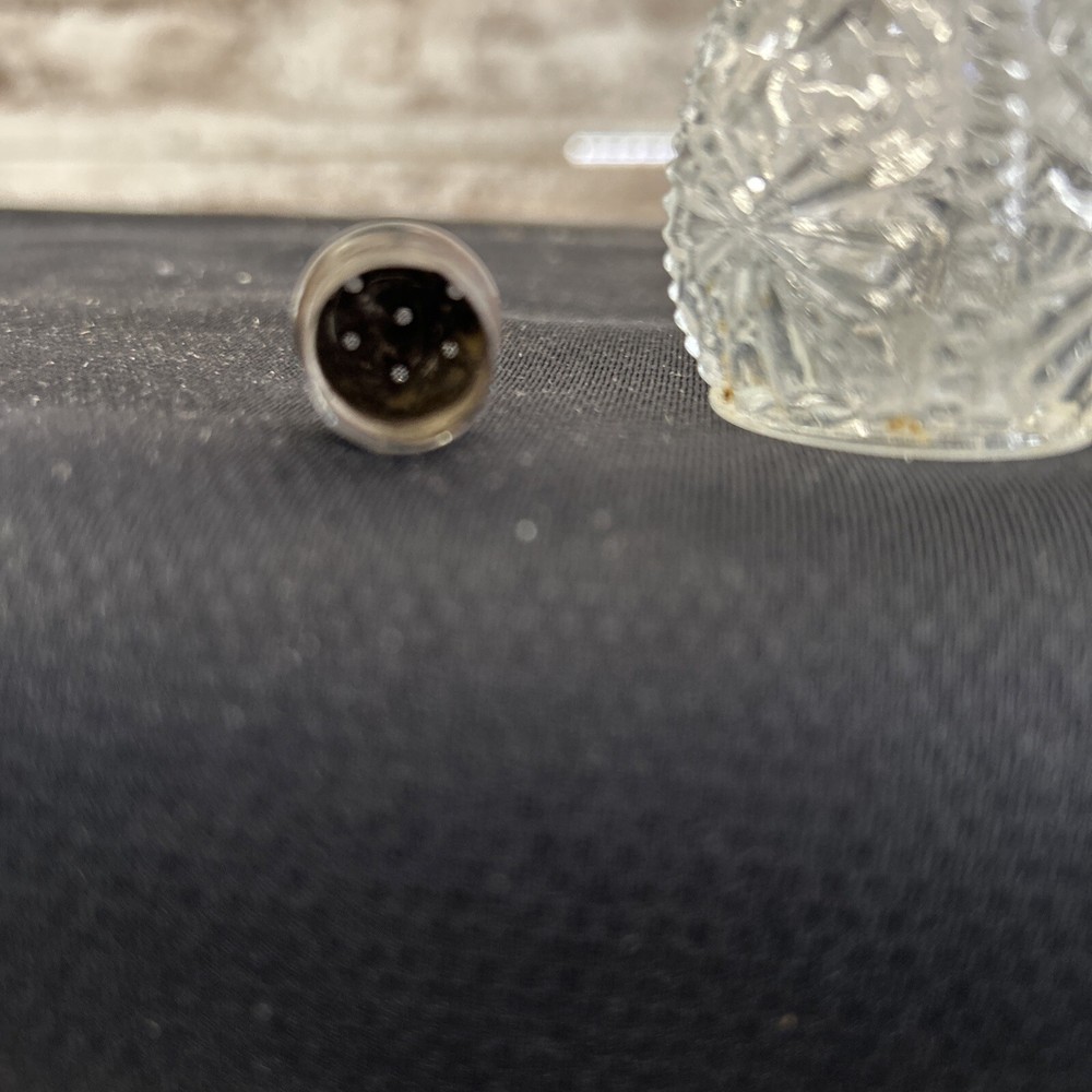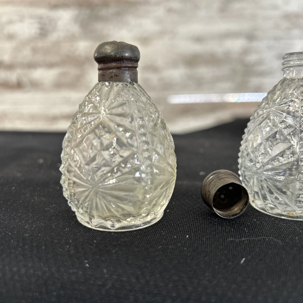Elevate your dining experience with these petite crystal salt and pepper shakers, complete with stylish silver caps. A touch of Victorian elegance, they are crafted from clear glass, making them a subtle yet sophisticated addition to any table setting. Proudly made in the United States, these original shakers exude a timeless charm without the need for any modifications. Their age and the country of manufacture remain a mystery, adding an air of intrigue. Perfect for collectors and enthusiasts of decorative tableware, these shakers are a must-have for those who appreciate the finer details in life. Item sold as is Made in the USA Caps appear to be silver but have age on them. Shakers are 2 1/4 inches tall tall and about 1 3/4 inch wide. See photos for physical condition