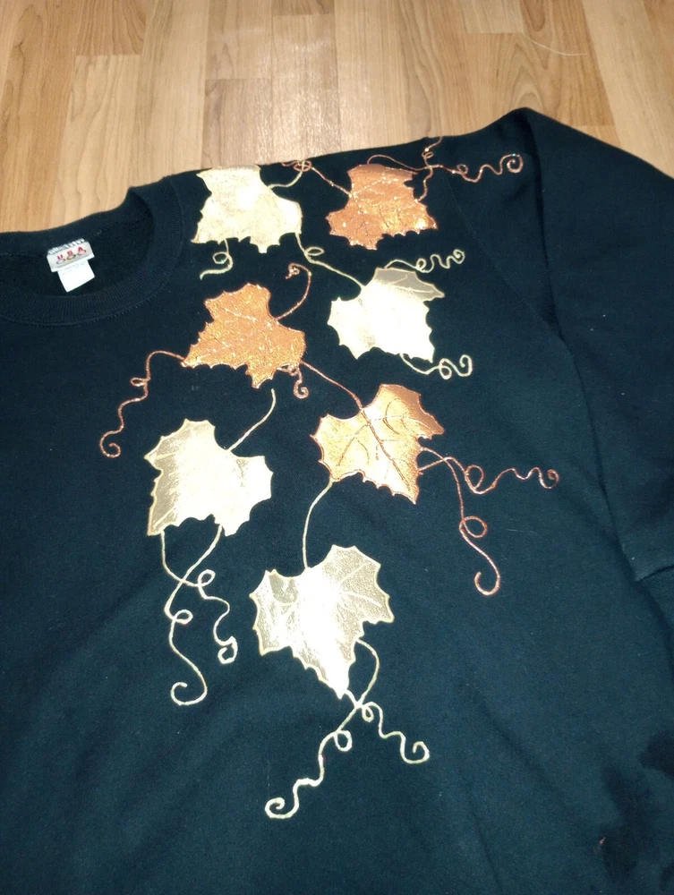 Show off your love for the USA with this vintage Olympic Apparel sweatshirt. The black sweatshirt features a stunning graphic print of 3D leaves, representing the Olympic spirit. The pullover sweatshirt has a crew neckline and long sleeves, perfect for all seasons. Made of a comfortable blend of polyester and cotton, this heavyweight sweatshirt is machine washable for easy care. The sweatshirt is lined and has the USA Olympic Apparel logo accents. Available in size XXL, this unisex sweatshirt is perfect for any USA Olympic fan.