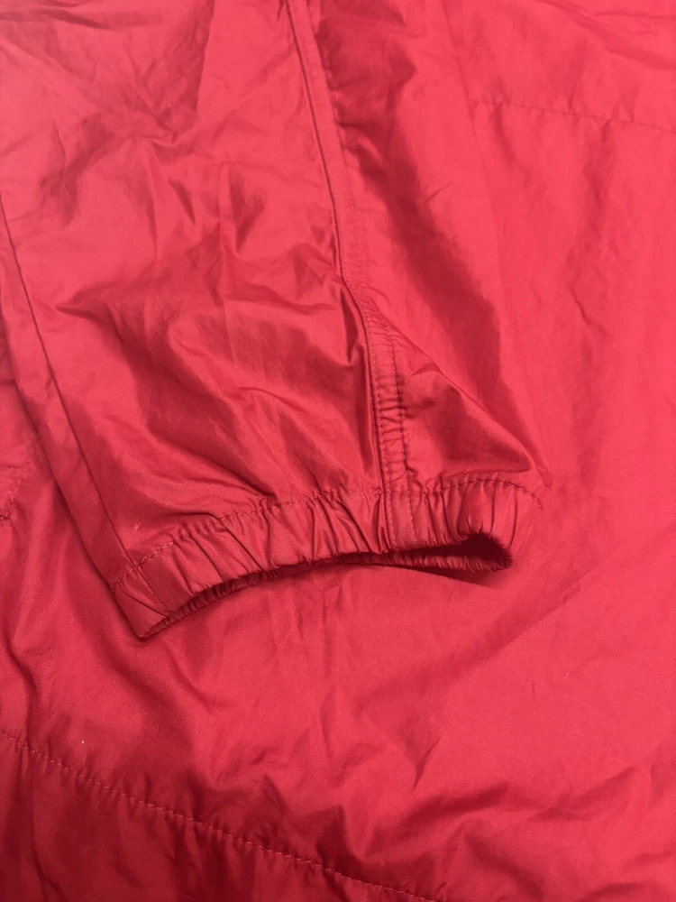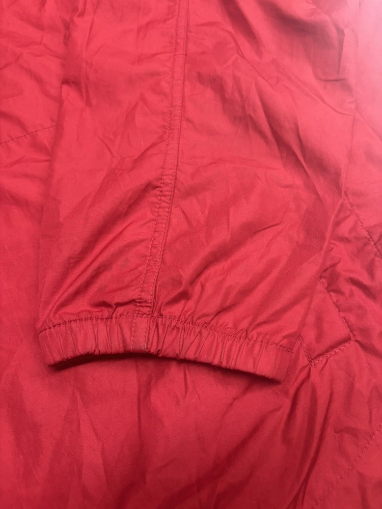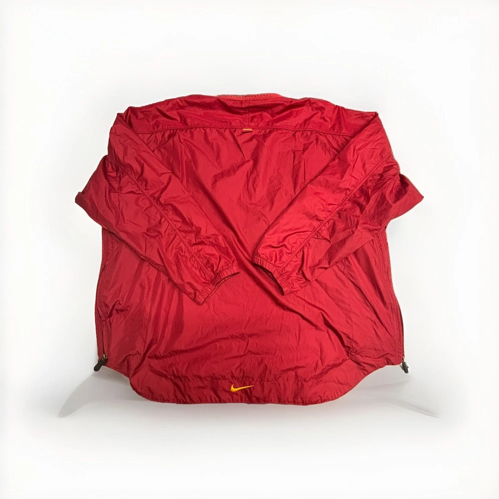 Vintage USC Trojans Nike Windbreaker Jacket in size 2XL for men. The jacket is red with embroidered details, featuring the USC Trojans team logo. It is officially licensed by Nike and designed for football fans to wear during the regular season. This Y2K era jacket offers a nostalgic and stylish way to show support for the team. Slight stains on the arms. Otherwise in excellent used condition