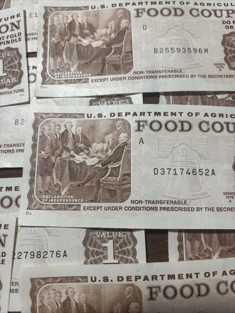 Here’s your chance to add a beautiful about uncirculated $1 authentic USDA paper food coupon/stamp to your collection. Each order will be chosen at random unless a specific date is otherwise requested. Each coupon will be equal to or better condition than the stamps shown in the photos from this listing. These are authentic $1 paper USDA food coupons from 1970’s 1980’s and 1990’s. All notes from this listing will come complete as a full stamp with either full tail partial tail or no tail. They will all be full notes, starting with the perforated left edge at a minimum. For bulk orders message me. These make great gifts for collectors of paper currency and postage stamps and other numismatic collectors alike. Great for teachers and us history buffs and anyone with a passion for American history from the last century. For some these stamps represent a simpler time of humble beginnings and can represent a tangible “started from the bottom now we’re here” collectible item. These stamps were meant to be destroyed after grocers and other retailers redeemed the coupons so not many survived the decades they were created in making these stamps rare and great additions to anyone’s collection.