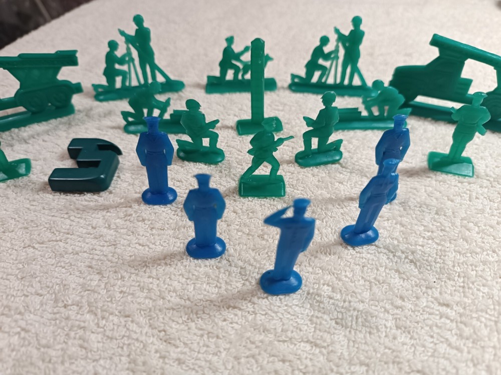 Plastic soldiers of the USSR are popular collectible and toy products of the Soviet era, produced in different republics of the USSR from the 1950s to the end of the 1980s. They were available to almost every child and were in great demand due to their availability, variety of plots and quality of manufacture. Features of plastic soldiers of the USSR: 1. Material: Made of plastic, most often polyethylene or polystyrene. 2. Dimensions: Usually their height was from 28 to 54 mm. 3. Theme: Military (soldiers of different armies, tanks, artillery). Historical (knights, Cossacks, Napoleon's troops, Ancient Rome, etc.). Plot (characters of fairy tales, cartoons, astronauts, etc.). 4. Manufacturers: Among the most famous are factories in Leningrad, Moscow, Saratov, Odessa, etc. 5. Assembly: Some models required assembly and were presented complete with equipment, such as tanks or guns. 6. Color: The soldiers were produced in a single color, most often in green, gray, red or yellow. Collector value: Today, these soldiers have become a collectible. Rare series, old issues and examples in good condition are especially valuable.Please feel free to ask any questions and check out my other items. Thanks for stopping by! Important shipping information: I am from Ukraine and all items are located in Ukraine. Usually shipping to the US, Canada and Europe takes about 2 weeks, shipping to Australia, Oceania and Asia takes 2 to 3 weeks. Your package will be shipped the same day or next day, Feel free to ask if you have any further questions regarding the item, shipping, etc