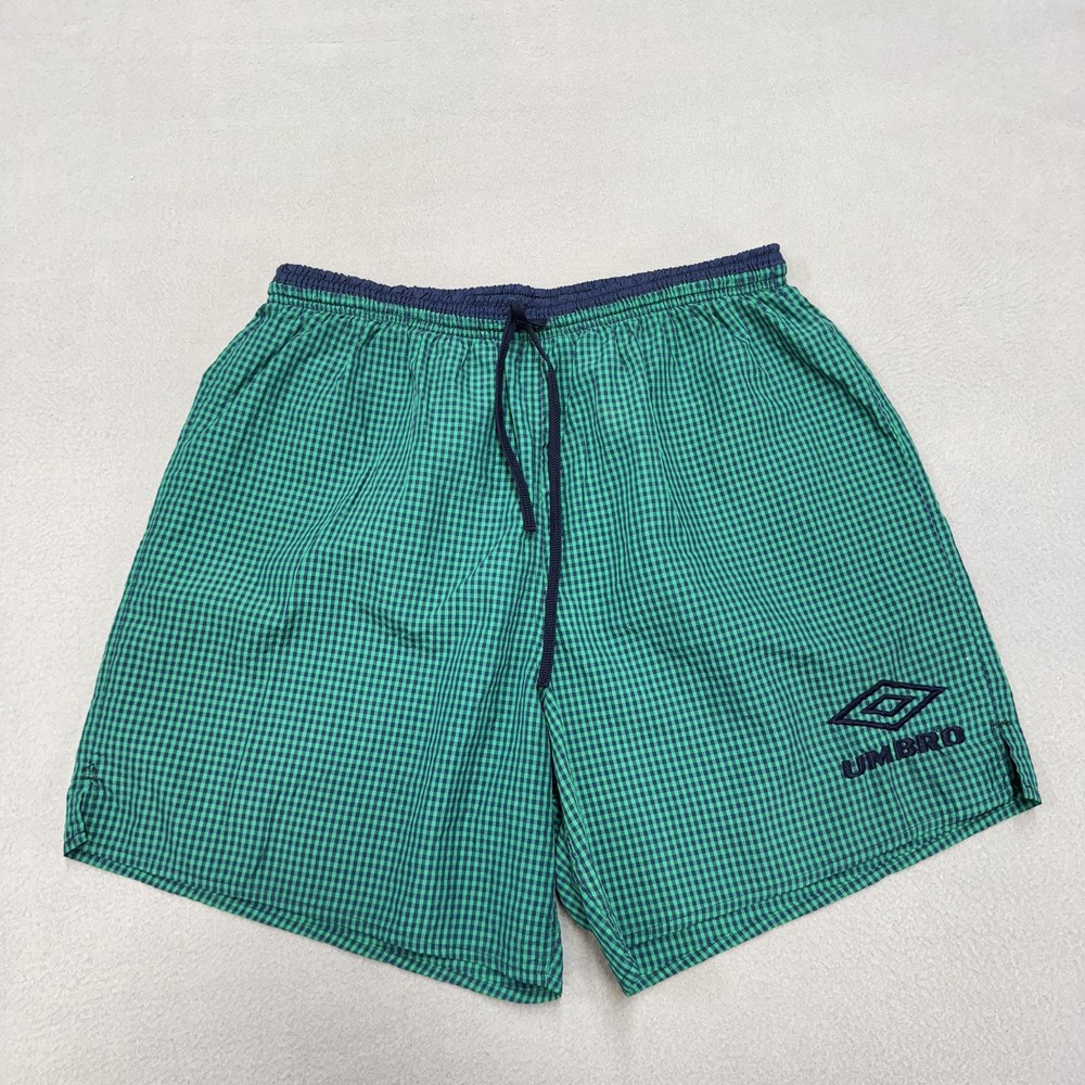 Pattern: Check Performance/Activity: Soccer Style: Athletic Brand: Umbro Material: 100% Polyester Size: L Country of Origin: United States Department: Men Size Type: Regular Inseam: 7 in Color: Green Occasion: Activewear Waist Size: 33 in