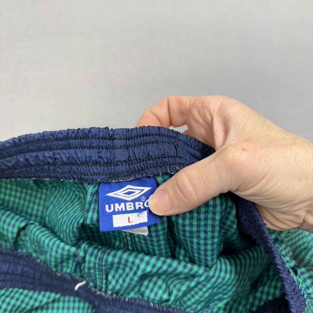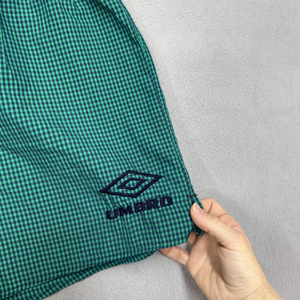 Vintage Umbro Shorts Mens Large Green Check Soccer Athletic Made USA 90s
