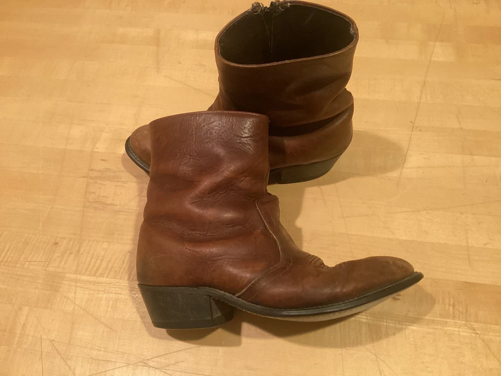 Vintage higher quality men’s western style ankle zip cowboy boots. Show signs of wear and use, missing insoles. Even heel wear. Fast free shipping