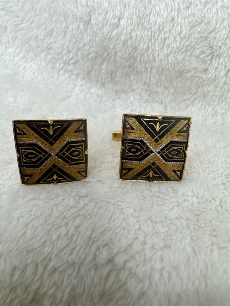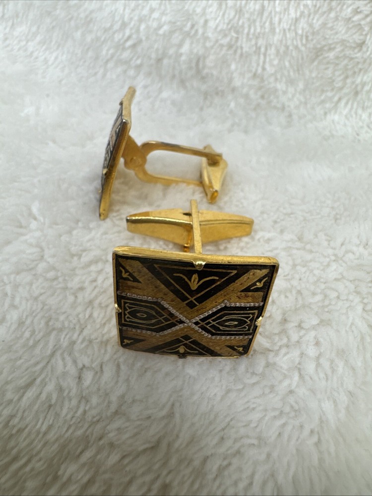 Vintage Unisex Geometric Mod Diamond Amascene Cufflinks for Timeless Style