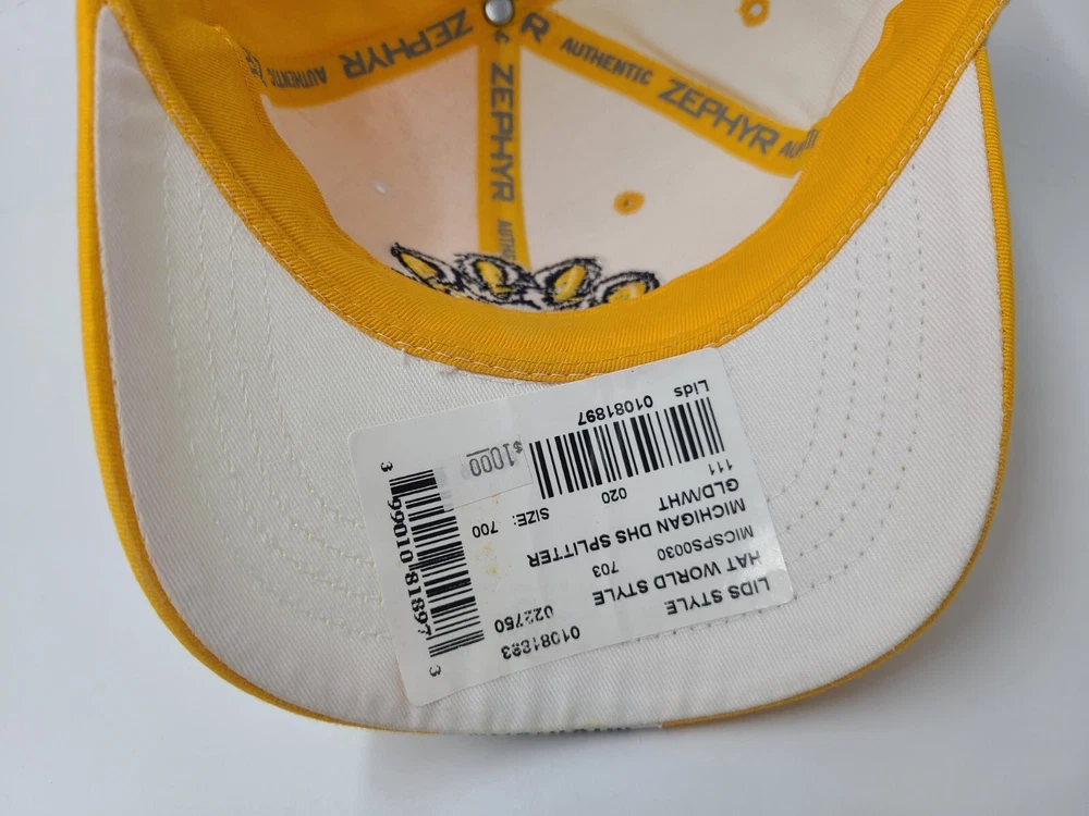 Has some stains on the front and side as seen in photos. Vintage University of Michigan Wolverines Zephyr Fitted 7 Hat Cap Yellow White. EACH ADDITIONAL HAT PURCHASED IS ONLY $1 ADDED SHIPPING!