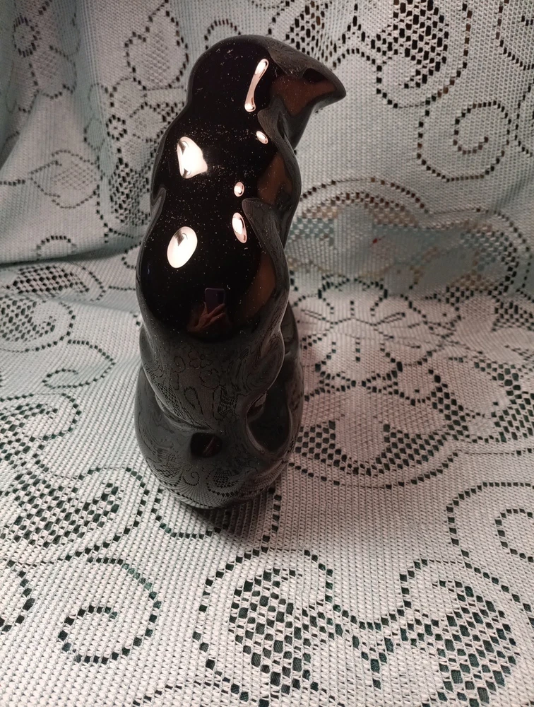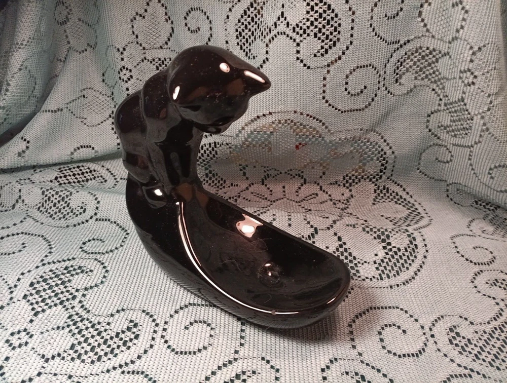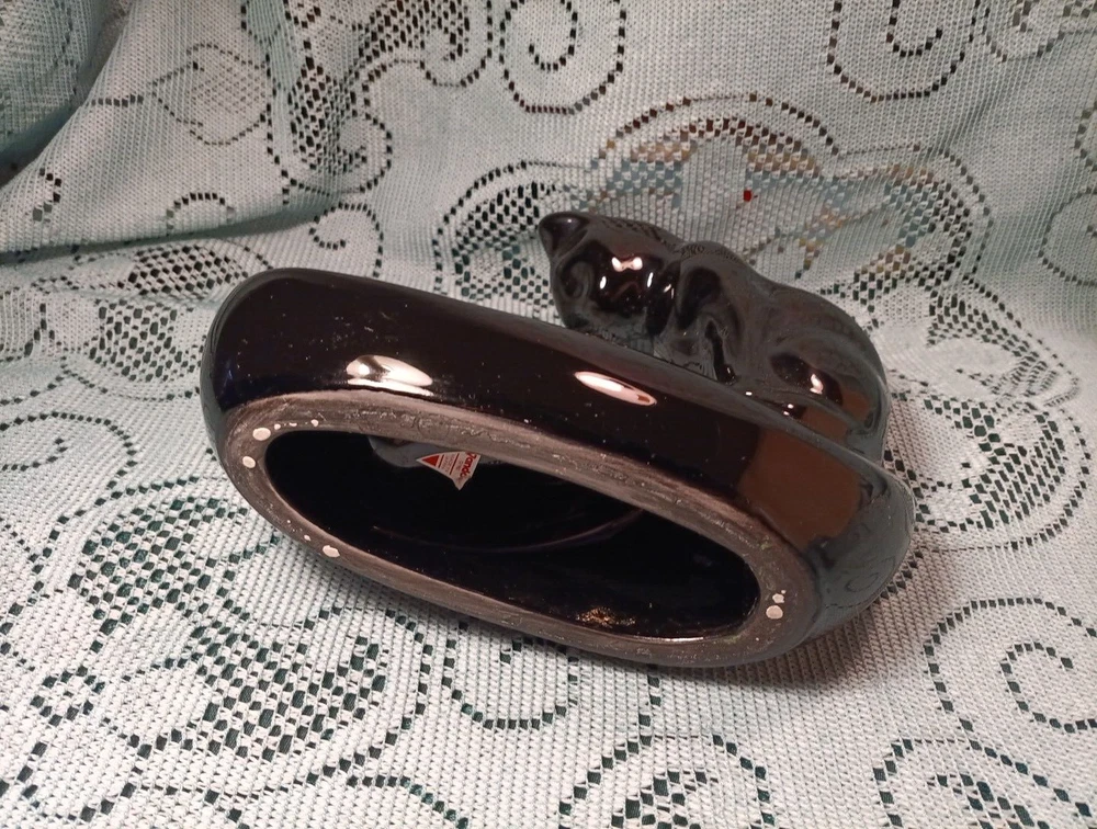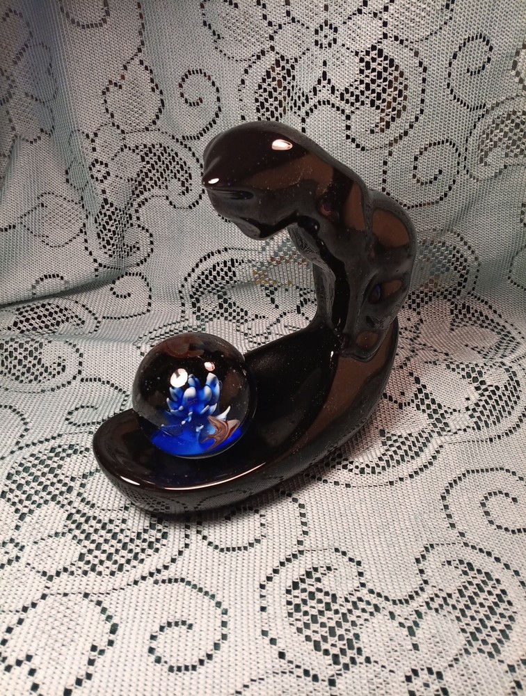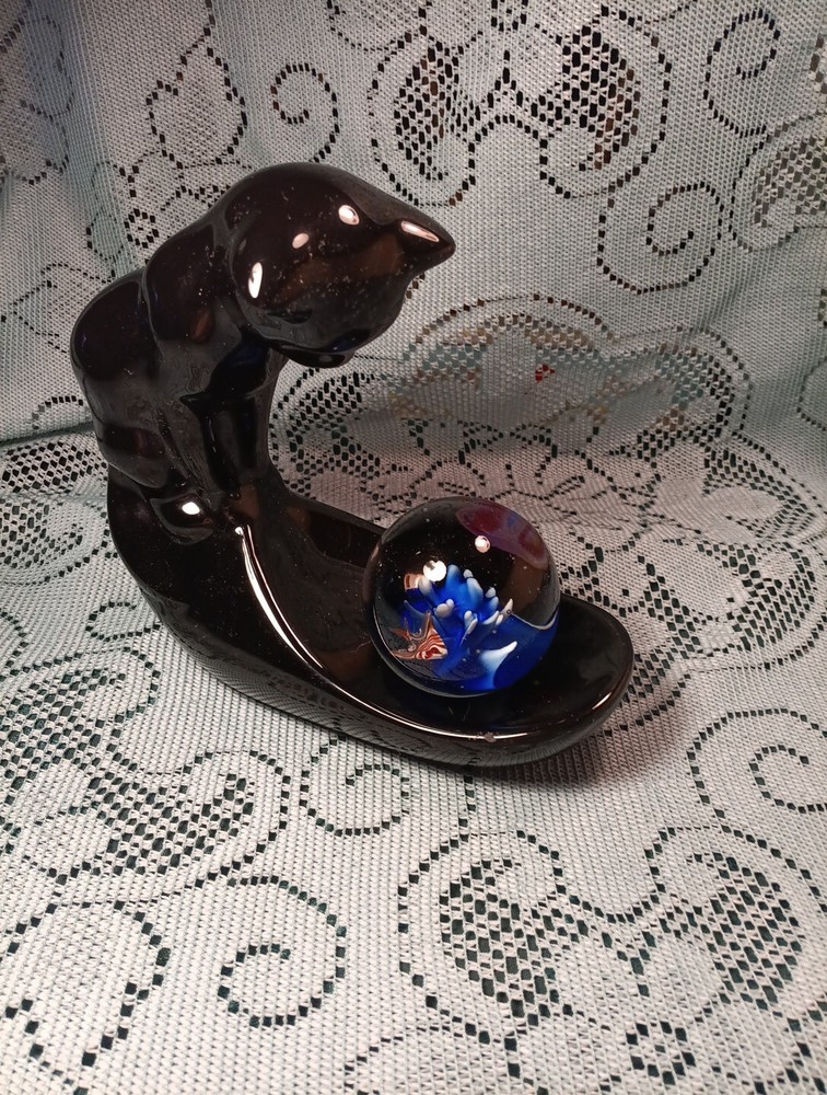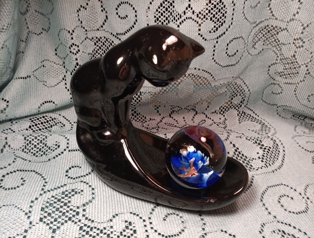 Vintage Ceramic Vandor Black Cat Fish Bowl Holder Haeger Style w/Glass Fish Glass Paperweight. I liked the Paperweight more than the fishbowl, but of course fishbowl can be used. Fishbowl NOT INCLUDED but paperweight IS included. ITEM FROM A SMOKING ENVIRONMENT