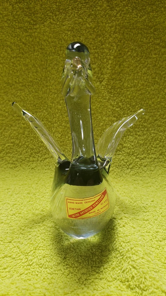 Add some Venetian charm to your collection with this beautiful set of three glass swans. Crafted in Murano, Italy, these figurines showcase exquisite detail and a delicate beauty that is sure to capture your heart. Handmade with care, each swan is a unique work of art that will make a stunning addition to any home. Whether you're a collector of fine glassware or simply appreciate the beauty of these majestic birds, this set is a must-have for your collection. So why wait? Add a touch of Italian elegance to your home today with this exquisite set of glass swans! The tallest swan is the one with the wings fully tucked and stands 6" tall, then the one unfurling is 5.50" tall, and the one with the wings fully extended is 5" tall. The swans have zero chips or cracks. Check out the photos and message me with any questions you may have. While these beautifully crafted swans are on the small size they pack an unexpected heft/weight. Don't let this unexpected set pass you by. Individually the same swans are selling for $35 each.